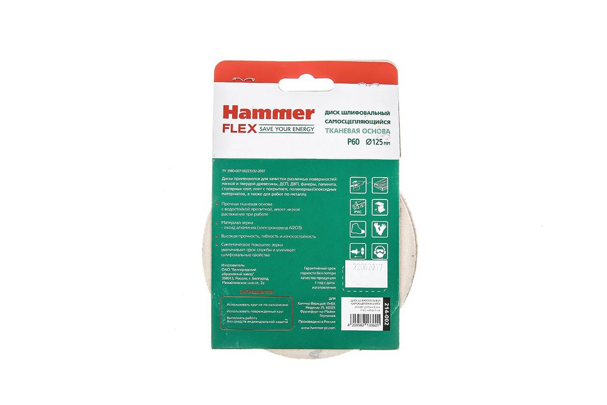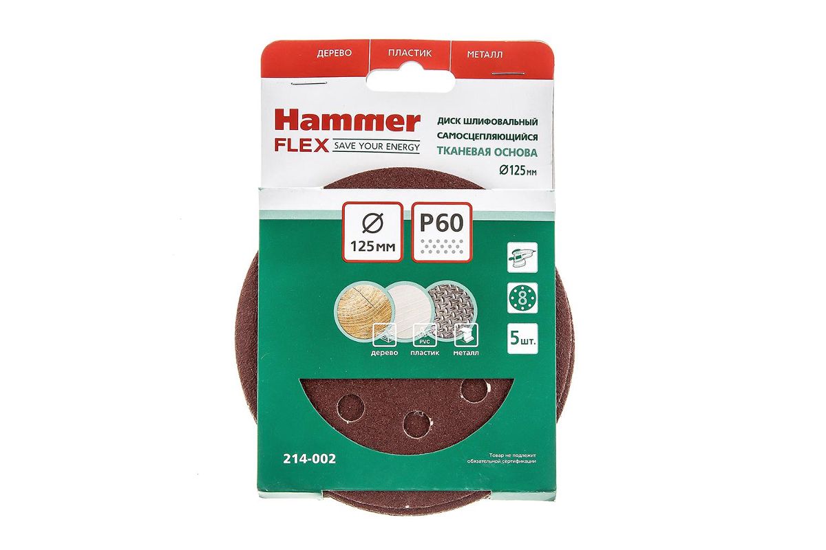 Круг шлиф.самосцепляющийся Hammer 214-002 Д125мм P60 8отв. цена за упаковку 5шт