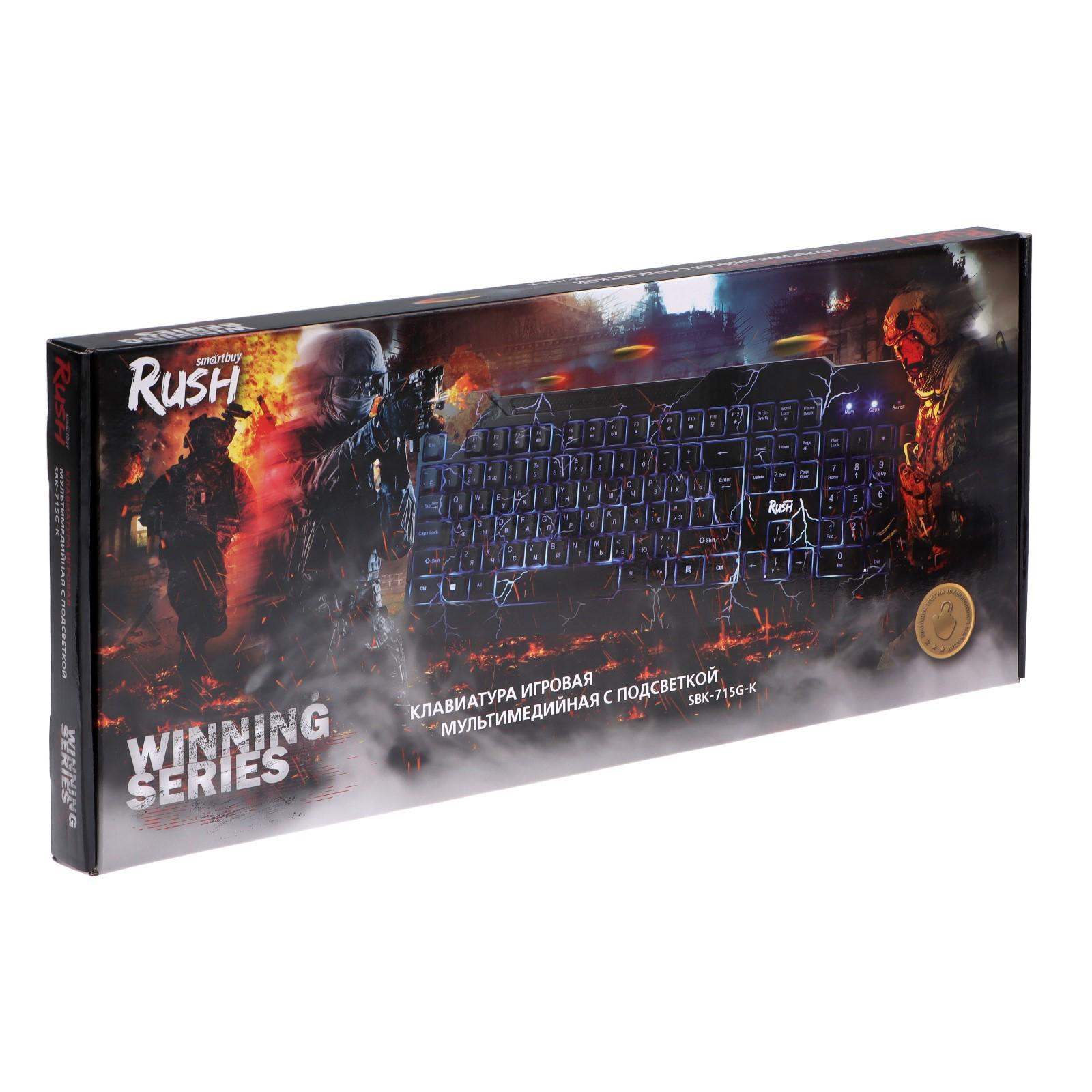 Клавиатура Smartbuy RUSH 715, игровая, проводная, мембранная, 104 клавиши, подсветка, черная