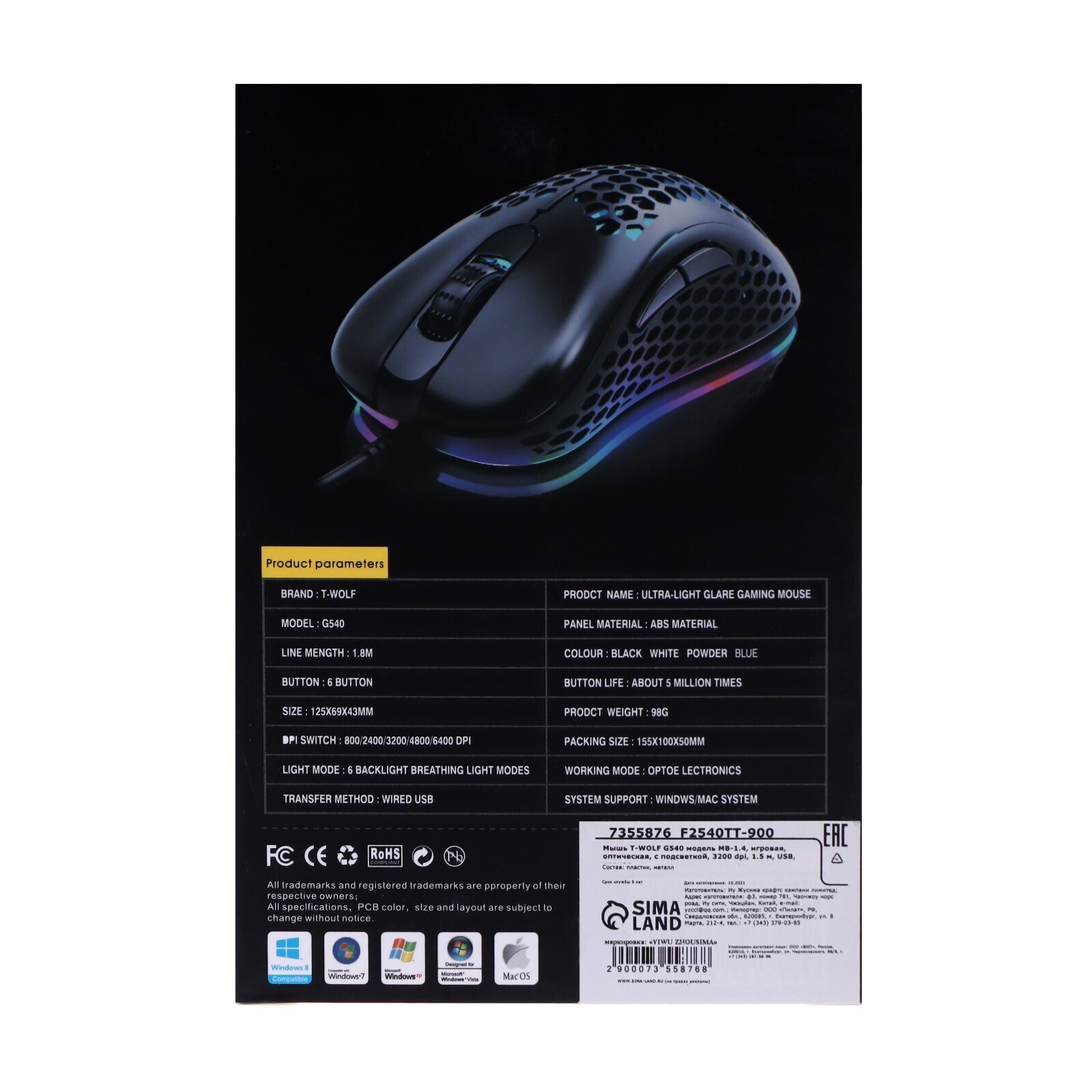Мышь компьютерная MB-1.4, игровая, оптическая, с подсветкой, 3200 dpi, 1.5 м, USB, черная