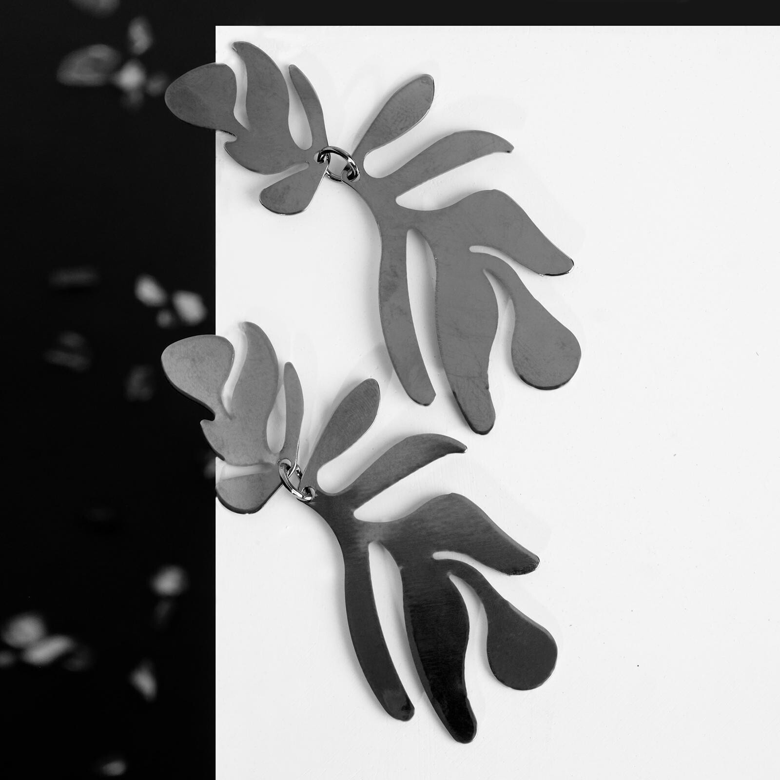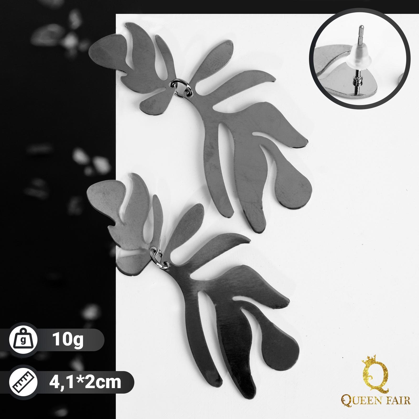 Серьги металл "Атмосфера" пальмовый узор, цвет серый