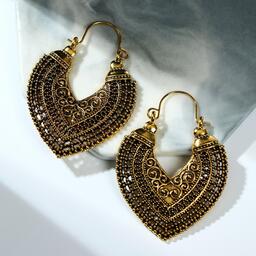 Серьги металл "Восток" сердце, цвет чернёное золото