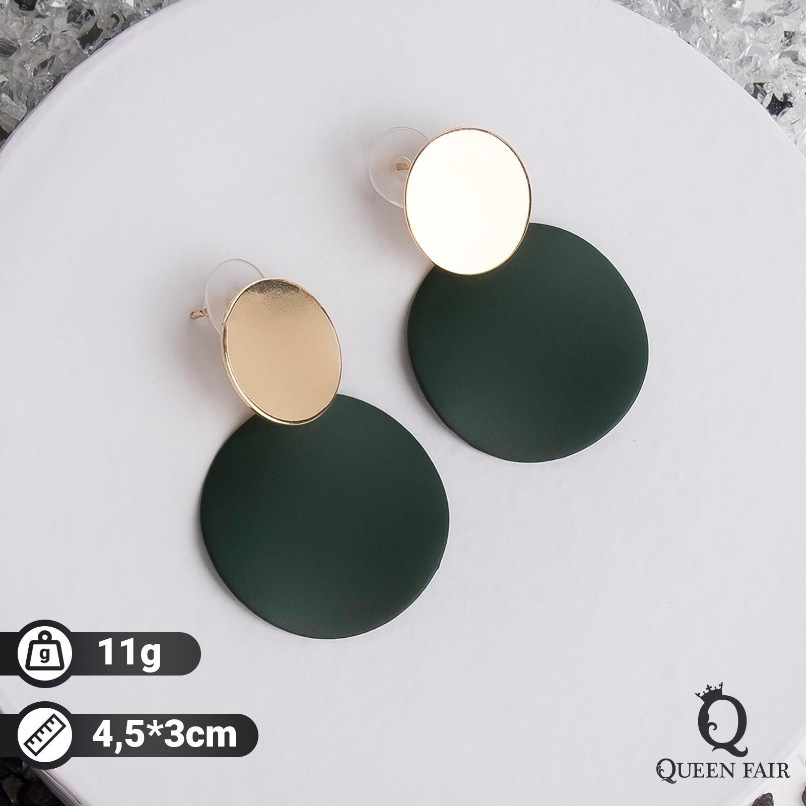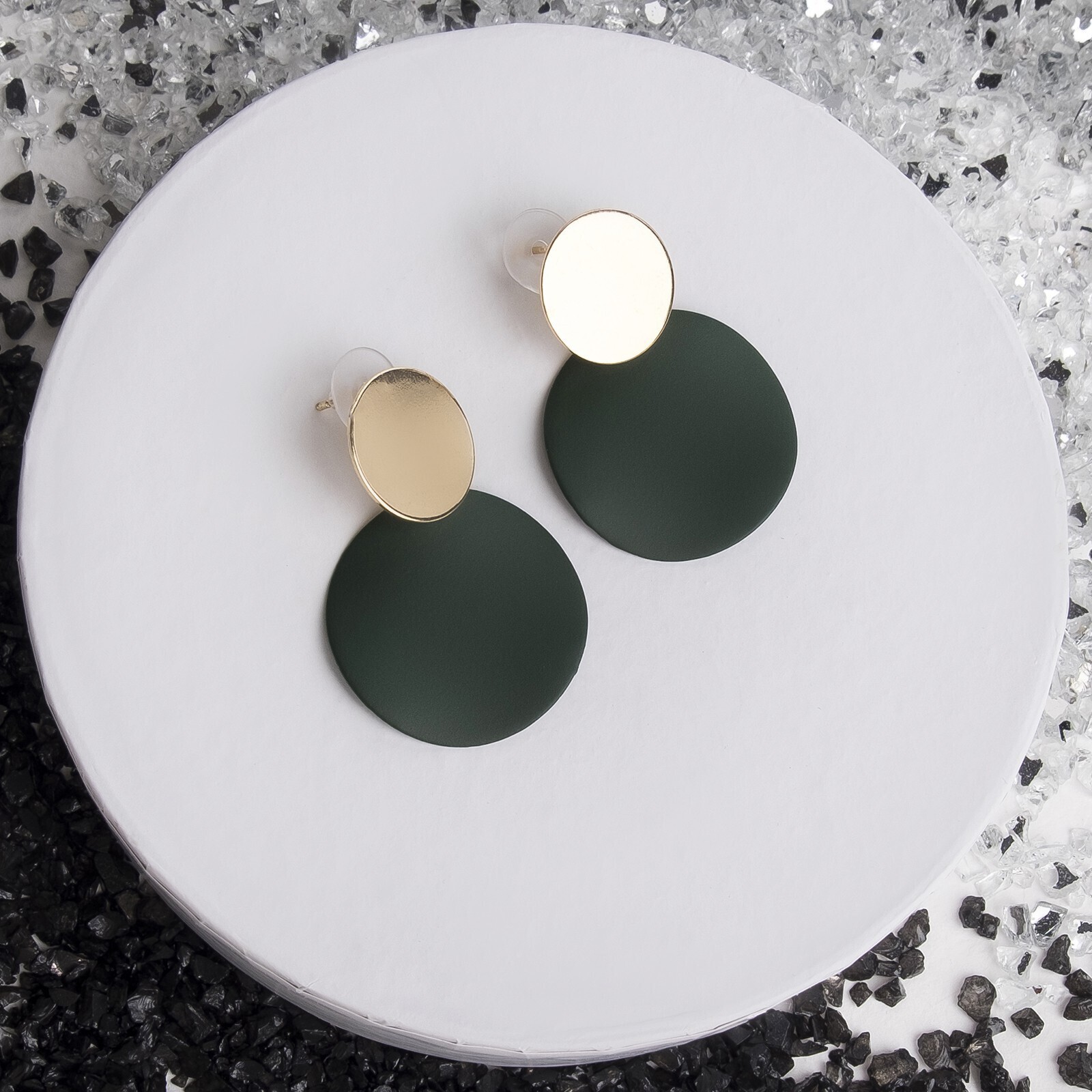 Серьги металл "Леди" два круга, цвет зелёный в золоте