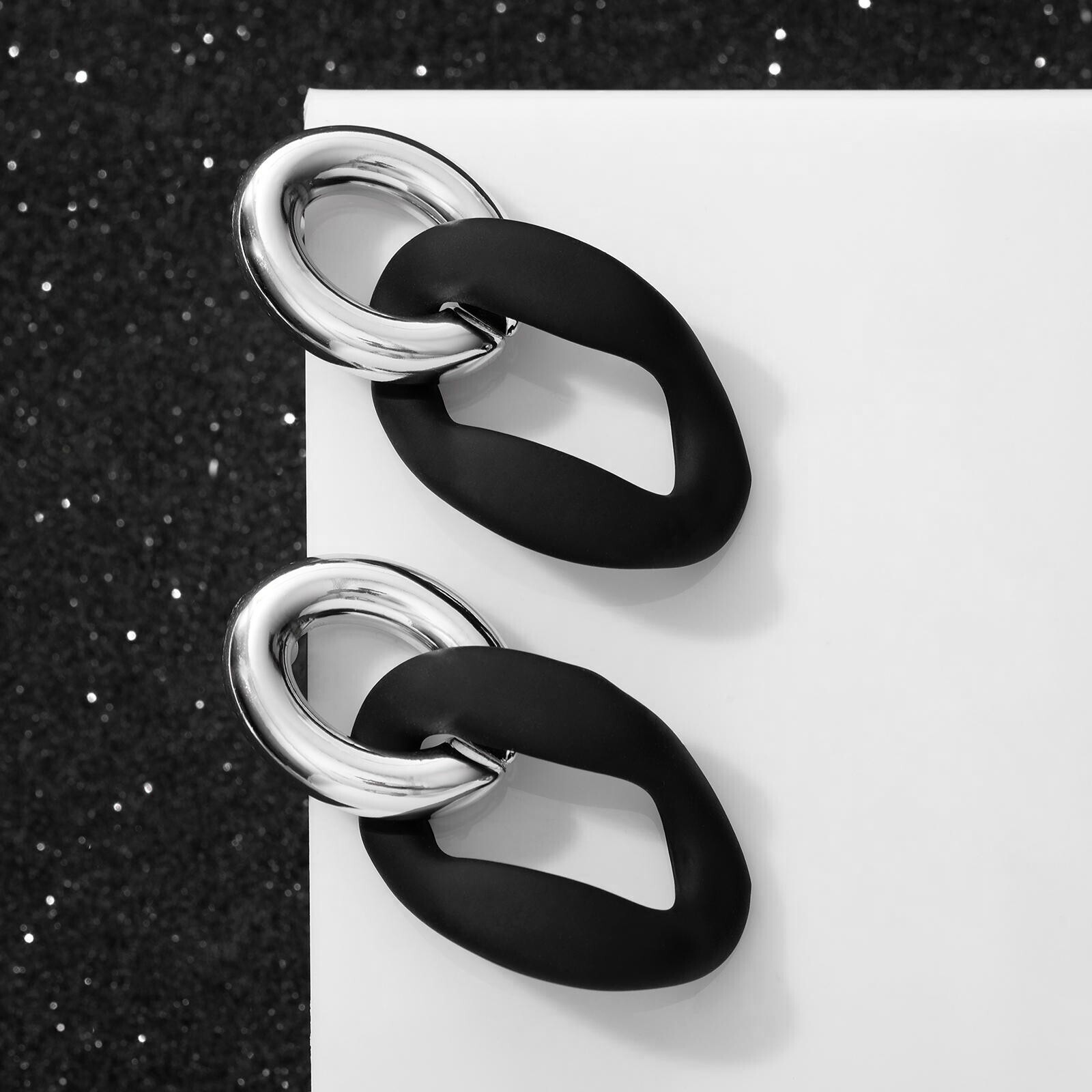 Серьги металл "Цепь" неровность, 2 звена, цвет серебристо-чёрный