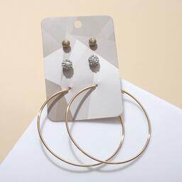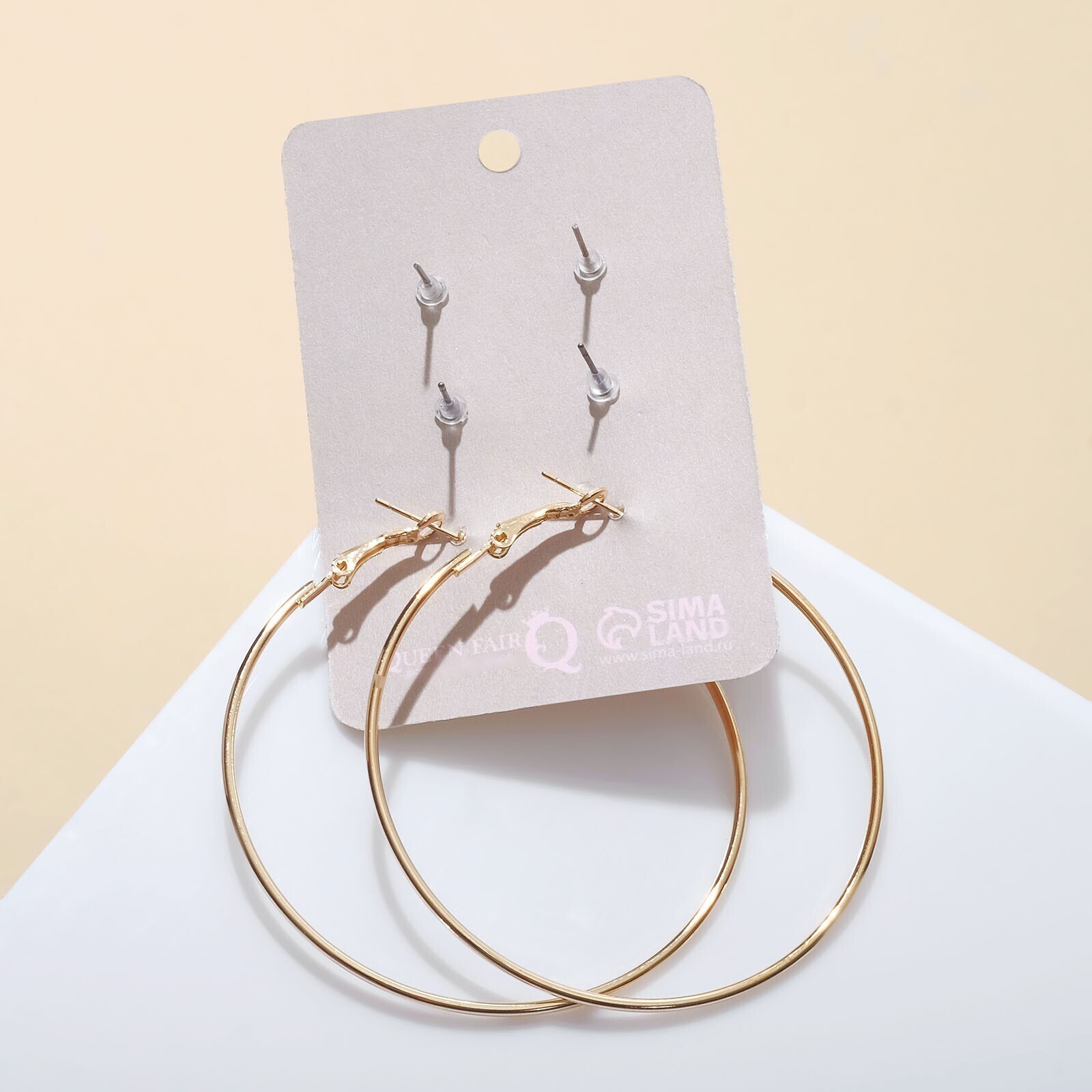 Пусеты 3 пары "Топ" кольца и бусины, цвет белый в золоте