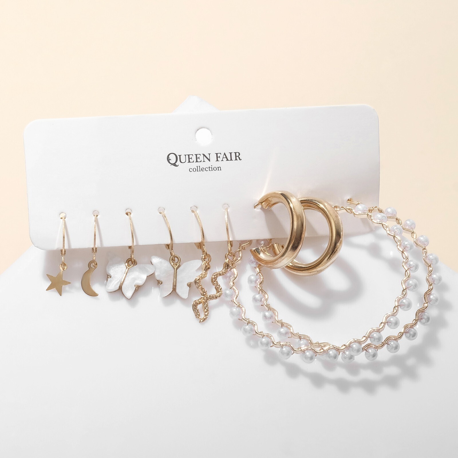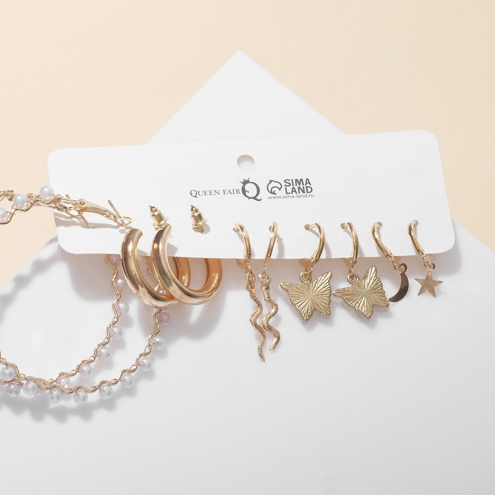 Серьги набор 5 пар "Леди" весна, цвет белый в золоте