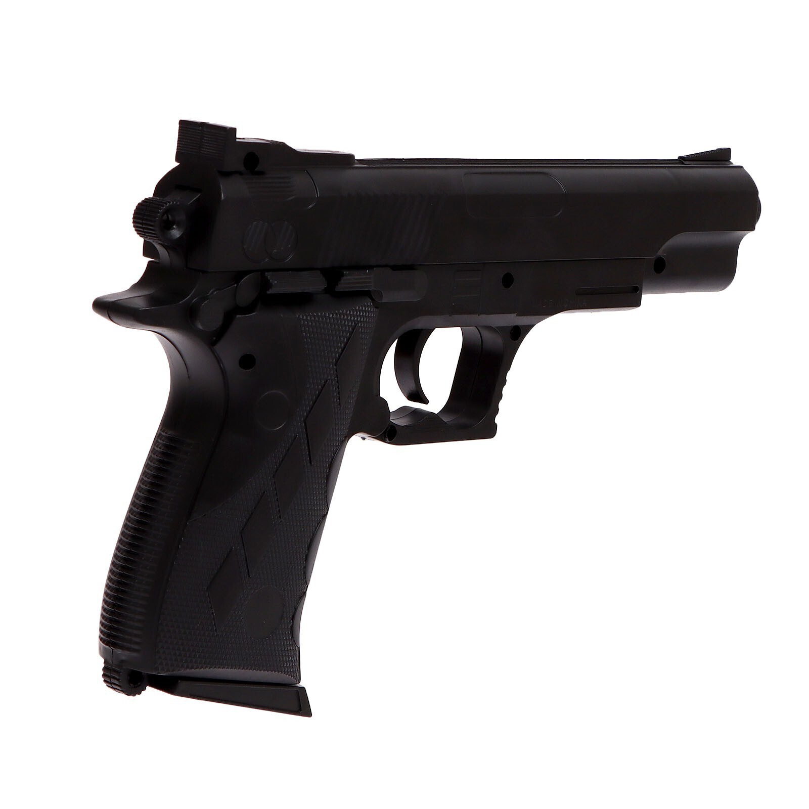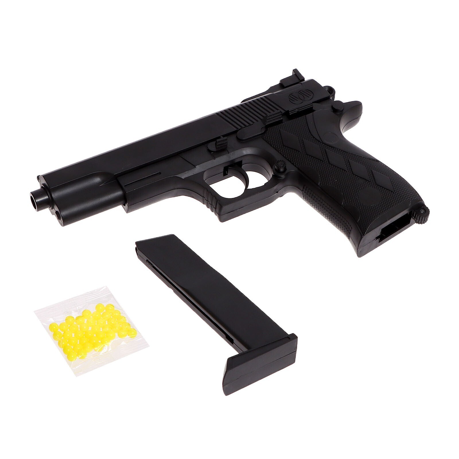 Размер пистолета: 22,5 × 3 × 14,5 см.