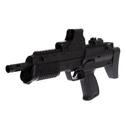 Пистолет-пулемёт МП7 был создан немецкой фирмой Heckler & Koch в 2001 году. Отличается высокой точностью для оружия своего типа, а благодаря компактности и лёгкости из него можно вести стрельбу даже с одной руки. Пневматическая модель оружия полностью повторяет внешний вид своего прототипа, а лазерный прицел сделает стрельбу более точной.