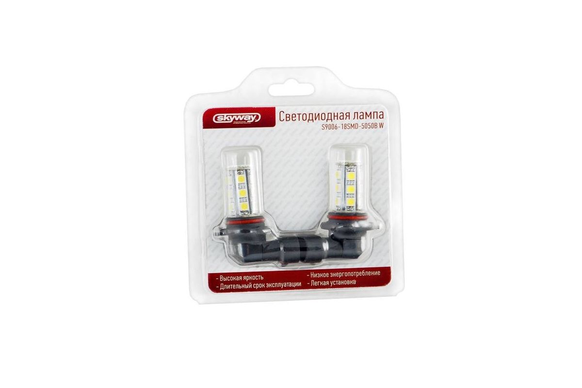 Лампа автомобильная SKYWAY S9006 5050-18B 2шт 12В ближний/дальний/противотум.