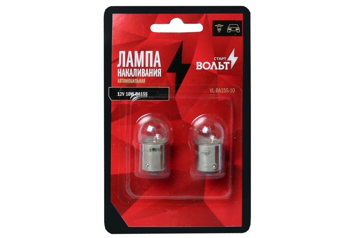 Автолампа СТАРТВОЛЬТ VL-BA15S-10 накаливания в блистере 2шт 12В 10Вт BA15S