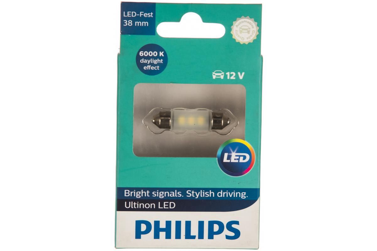 Лампа светодиодная PHILIPS Fest T10,5x38 12V-LED 1,0W (SV8,5) 6000K Ultinon LED Fest T10,5x38 12V-LED 1,0W (SV8,5) 6000K Ultinon LED