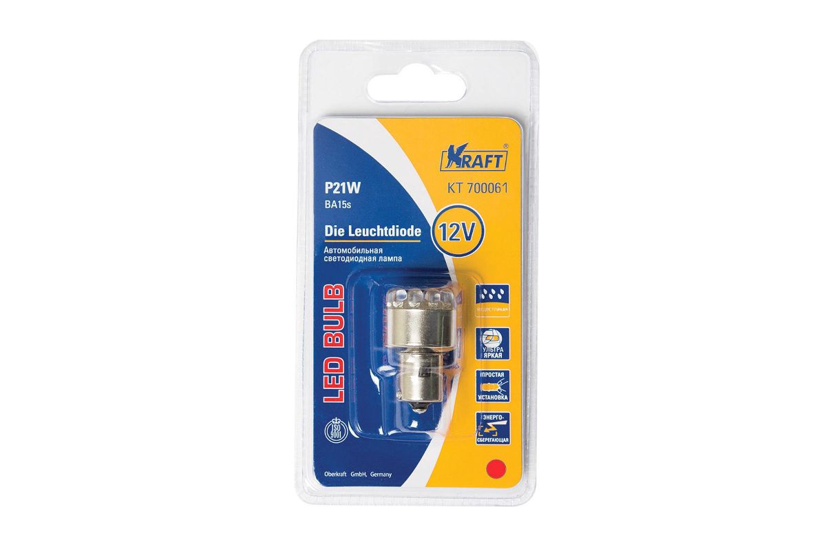 Светодиодная лампа KRAFT KT 700061 P21W (BA15s) 12/24v Red 12 LEDs (1 шт.Блистер)