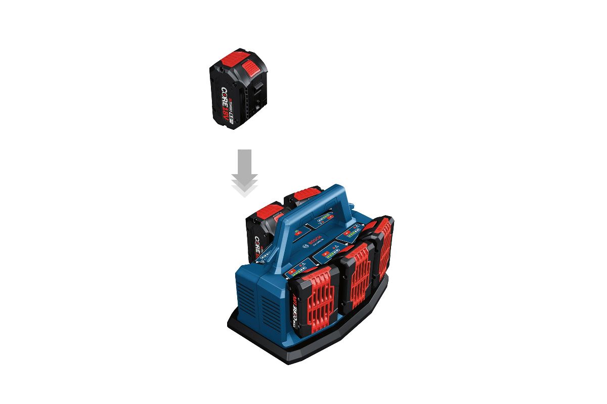 Благодаря зарядному току 8 А аккумуляторы ProCORE18V 8,0 Ач заряжаются в режиме быстрой зарядки до 80% всего за 42 минуты. Индикаторы с 5 светодиодами на каждом посадочном месте показывают точный ход зарядки. C помощью кнопки приоритетного пуска можно выбрать, какой аккумулятор заряжаять первым.