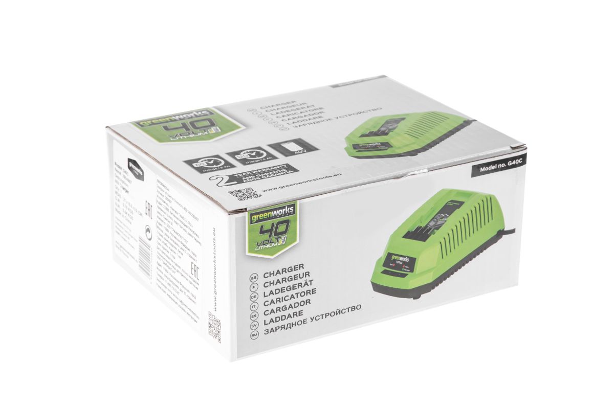 Зарядное устройство GREENWORKS G40C (2904607) 40в g-max40 220В t зарядки 2Ач40мин/4Ач80 мин