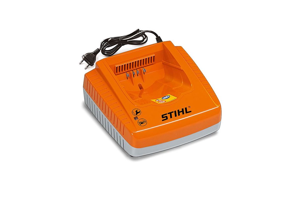 Для аккумуляторов STIHL AP и AR. Специальное приспособление на нижней стороне корпуса для размещения на стене и сматывания кабеля, с индикатором состояния заряда (светодиод) и активным охлаждением.