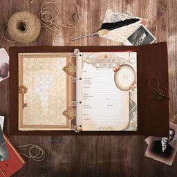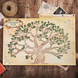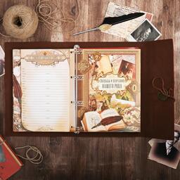 Родословная книга на кольцах в переплёте из кожзама содержит 65 листов, лист генеалогического древа формата А2 и лист наклеек для него. Листы состоят из мелованного картона плотностью 250 гр.