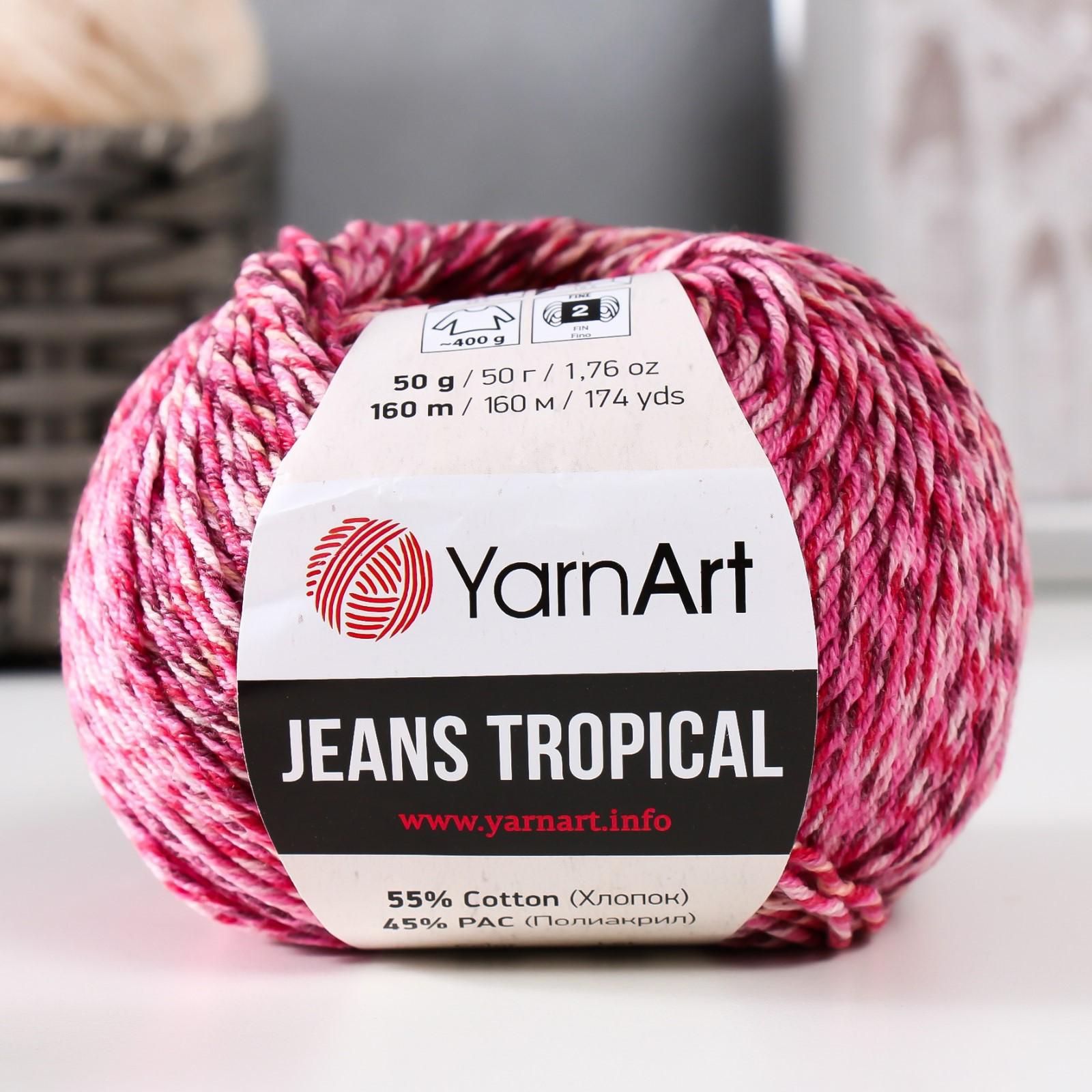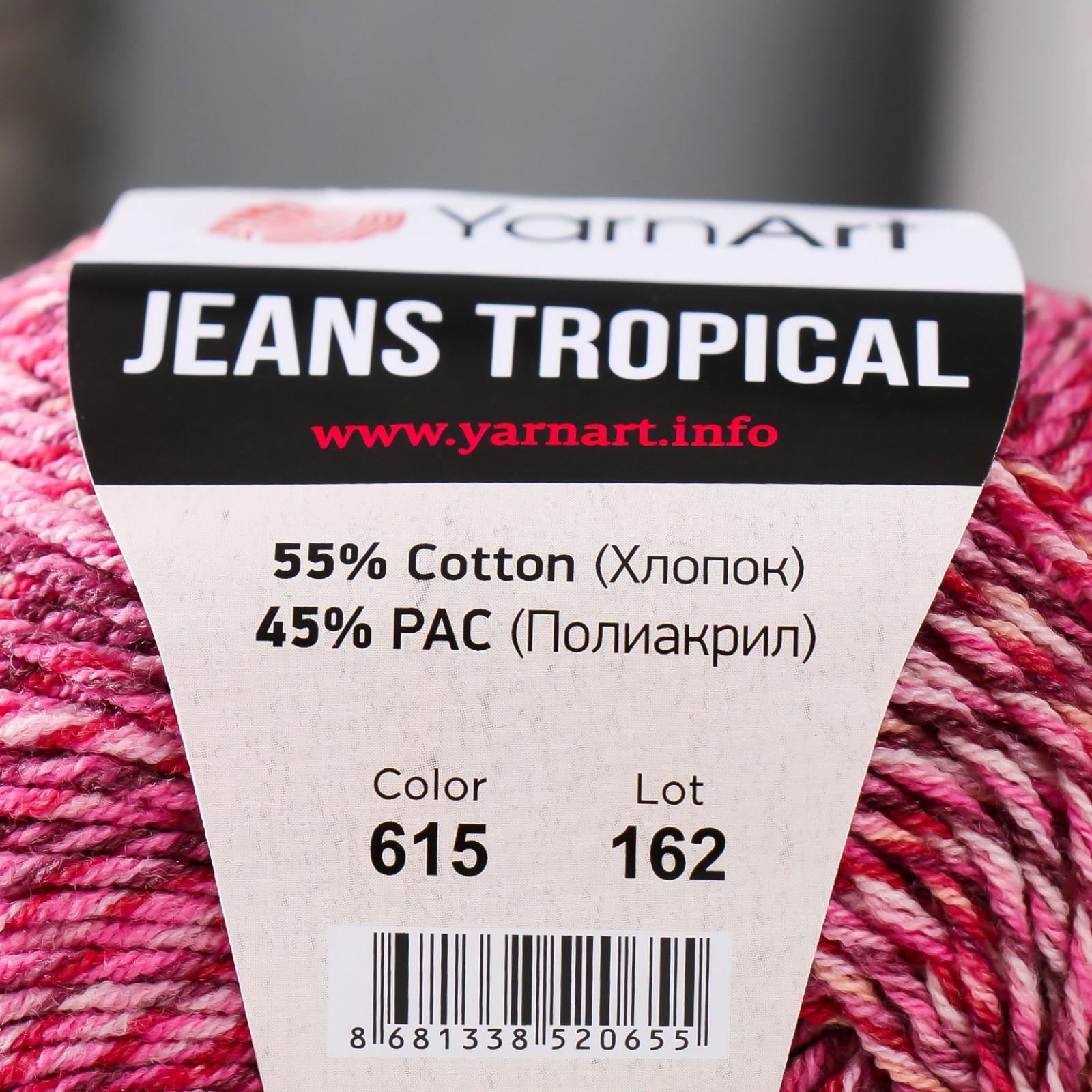 Пряжа "Jeans Tropical" 55% хлопок, 45% полиакрил 160м/50гр (615 розовый-брусника)