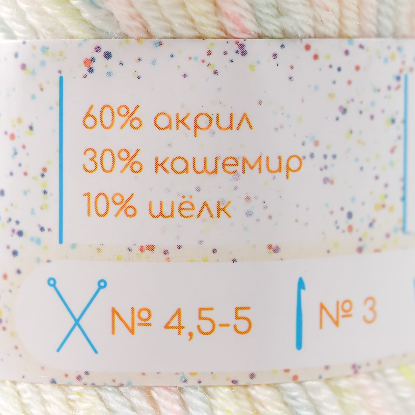 Пряжа 60% акрил, 30% кашемир, 10% шёлк "Веснушки" 50 гр 80 м цвет 04В сливки