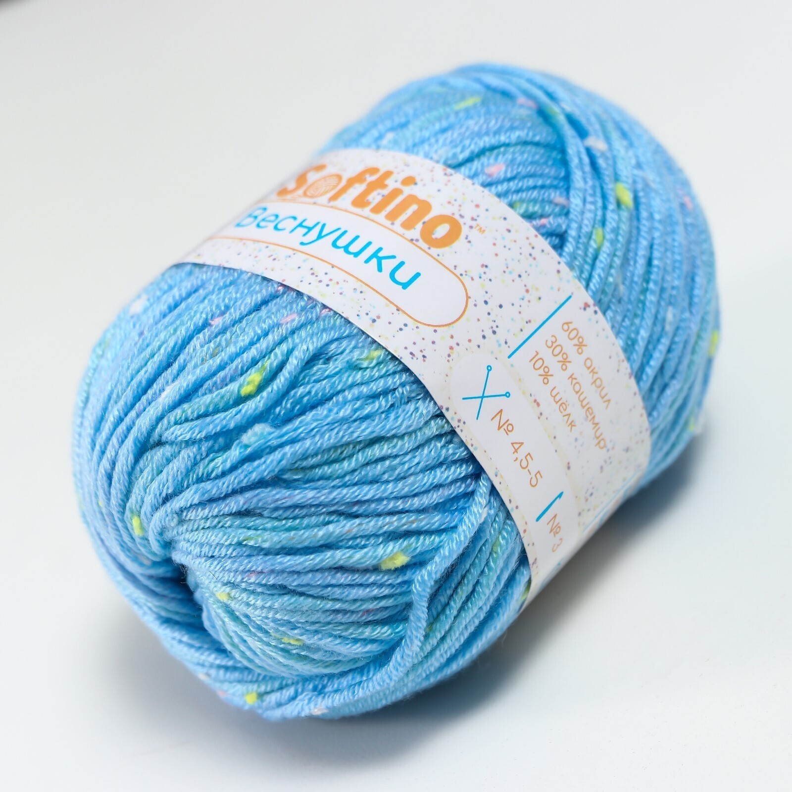Пряжа 60% акрил, 30% кашемир, 10% шёлк "Веснушки" 50 гр 80 м цвет 12В нежно-голубая