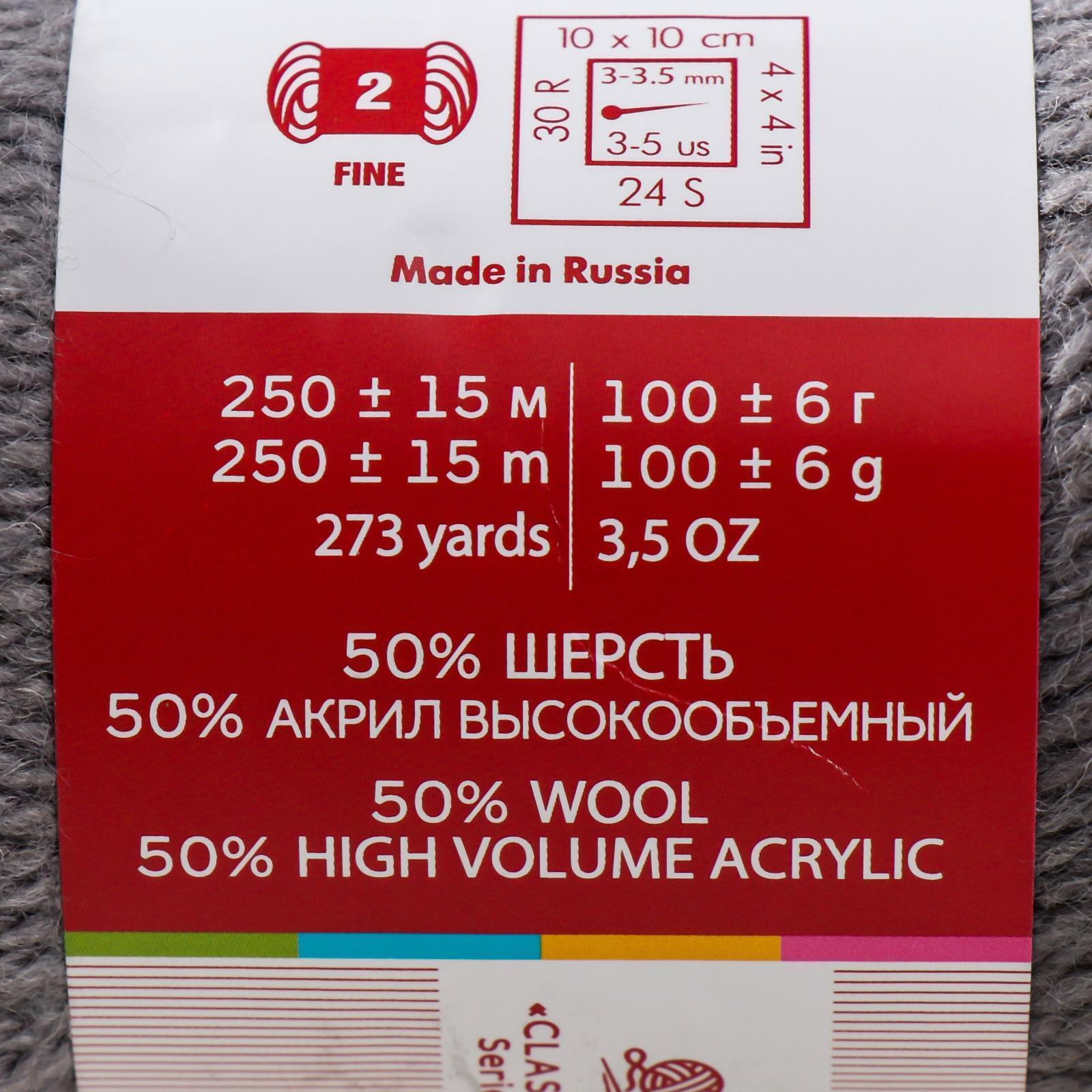 Пряжа "Подмосковная" 50% шерсть, 50% акрил 250м/100гр (48 Серый)