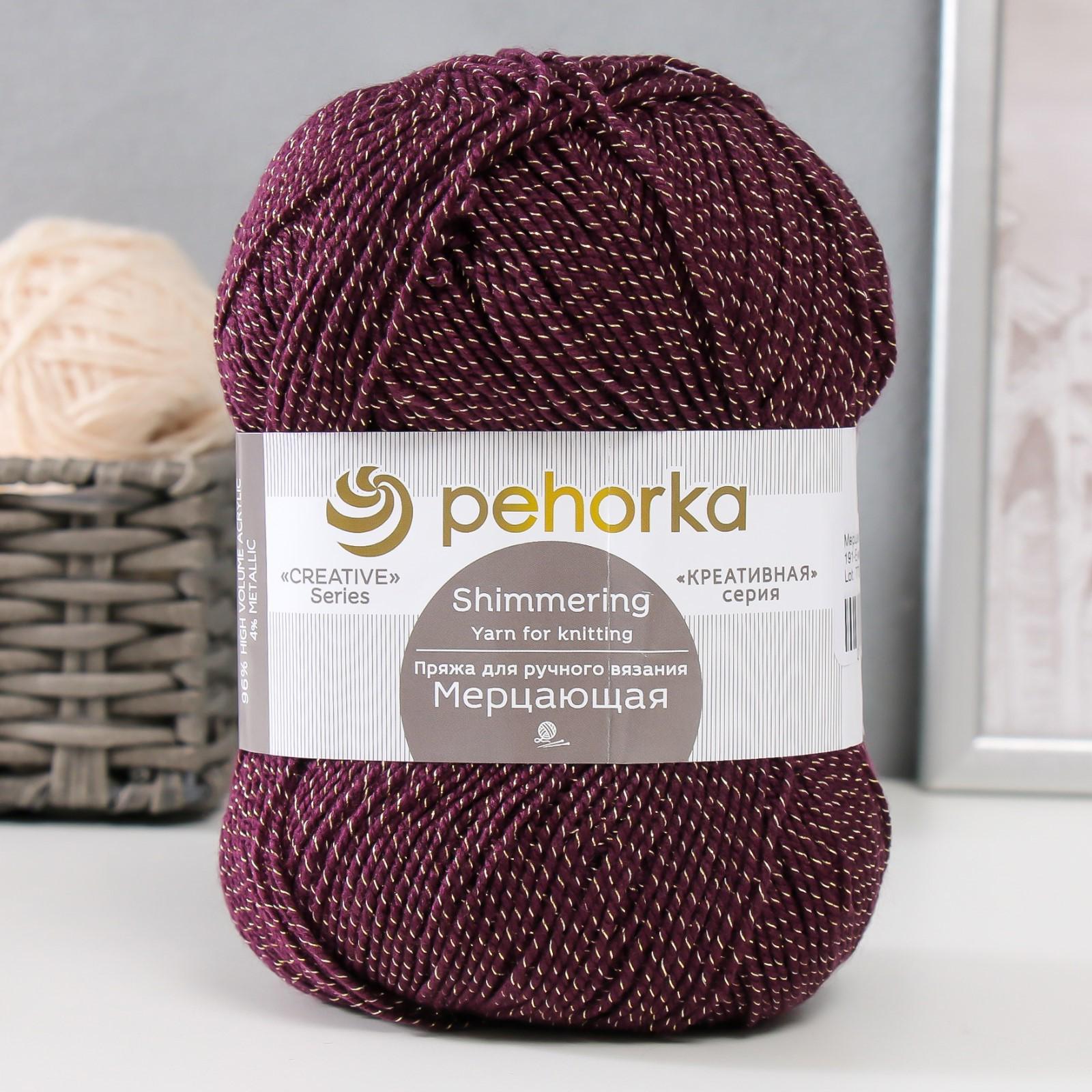Пряжа "Мерцающая" 96% акрил высокообъемный, 4% метанит 430м/100гр (191-Ежевика)