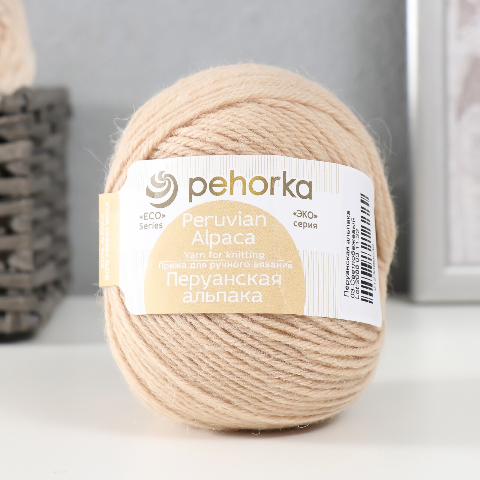 Пряжа "Перуанская альпака" 50% альпака, 50% меринос.шерсть 150м/50гр (03-Светлобежевый)
