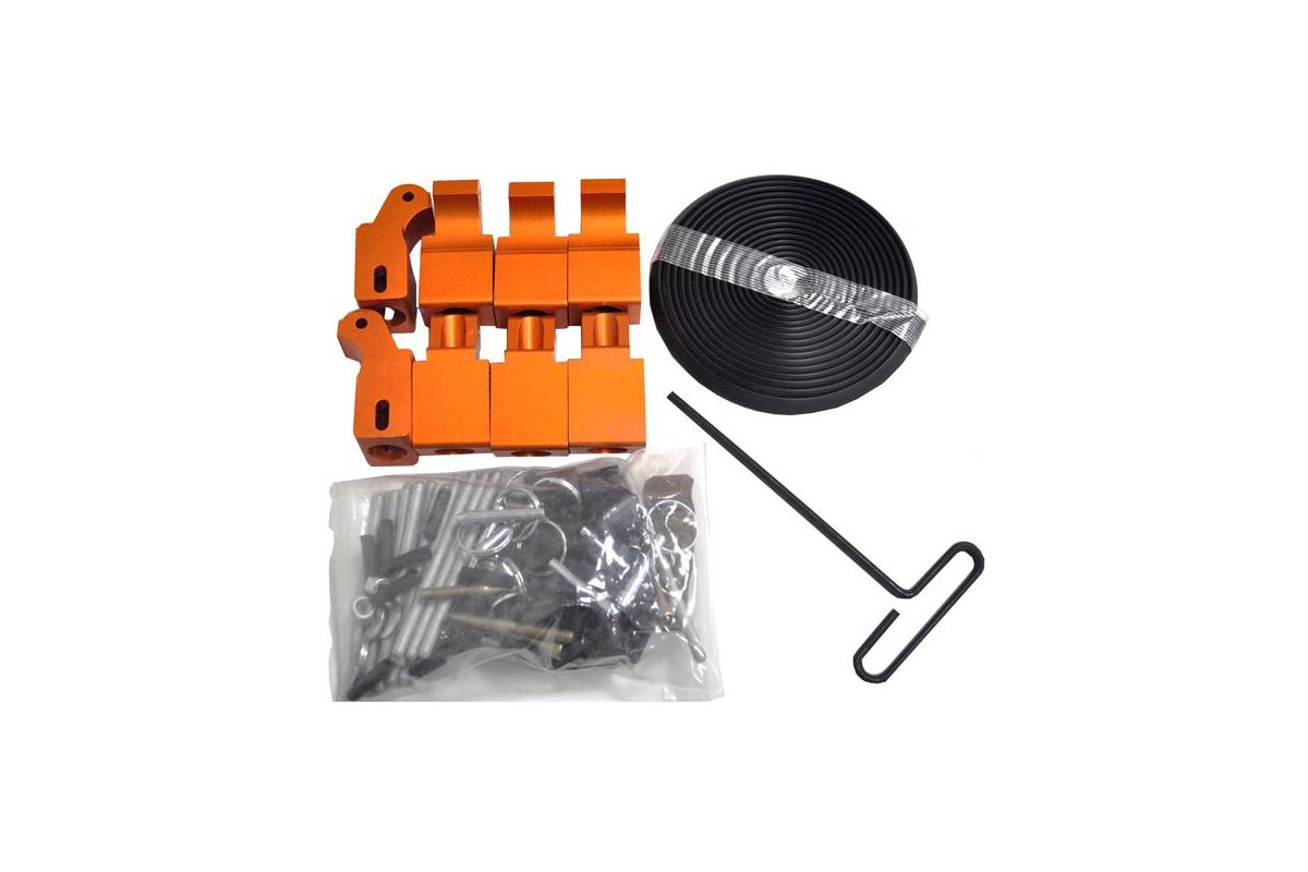 Комплект расходных материалов в котором помимо запасной виниловой вставки (оберегающей изделия от царапин) и ключей – присутствует 8 запасных шарниров (кол-во в ремкомплекте варьируется от длины станка) Вставка виниловая; Комплектов прижимных кулачков; Стержни для крепления прижимных кулачков; Резиновые заглушки для стержней; Шпильки для установки верхней ручки; Т-образный ключ для регулировки.