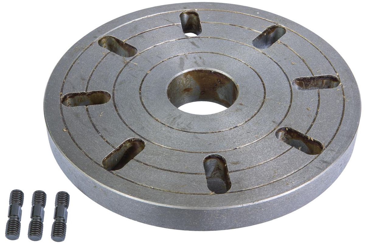 Планшайба O180 мм является одним из основных сменных приспособлений для выполнения целого ряда токарных работ на оборудовании, выпускаемым компанией JET. Приспособление используется для надежного крепления прихватами заготовок и деталей, имеющих сложную конфигурацию, нестандартную форму со смещенным центром. Крепление деталей осуществляется с помощью прихватов, тем самым передавая на заготовку вращающий момент. Планшайба диаметром 180 мм рассчитана для монтажа и крепления заготовок больших размеров для работы на станках моделей BD-8A и BD-9G.