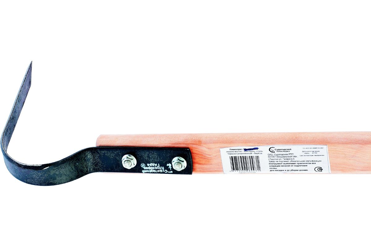 Применяется для глубокой копки-рыхления не паханых, тяжелых, глинистых почв; для подготовки борозд под посев глубиной до 15 см; для рыхления и прополки междурядий; окучивания картофеля и других овощей. Безотвальная обработка почвы - рыхление поверхностных слоев земли без оборота пласта. Состоит из согнутой в виде скобы пластины под определёнными углами, три режущих поверхности которой остро заточены и закалены. Рабочий элемент этого плоскореза сделан из инструментальной стали, что обеспечивает долговечность инструмента. Уменьшенный размер позволяет использовать инструмент в ограниченном пространстве теплицы или парника. Плоскорез дает возможность применить безотвальную технологию обработки почвы. Классическая модель ''Тепличный'' ручной почвообрабатывающий инструмент.