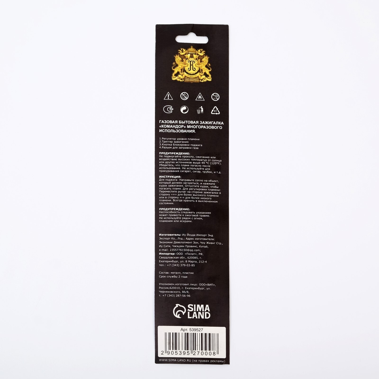 Газовая бытовая зажигалка "Командор", многоразового использования