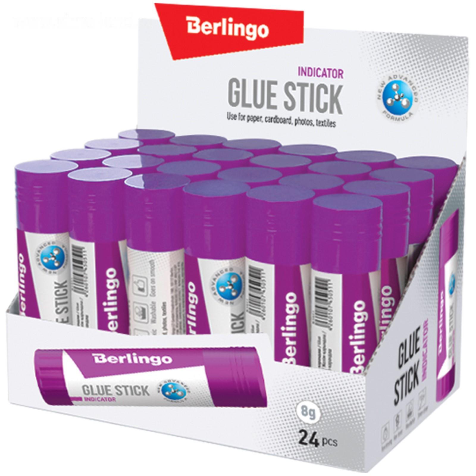 Клeй-карандаш ПВП 8 г Berlingo, с цветным индикатором