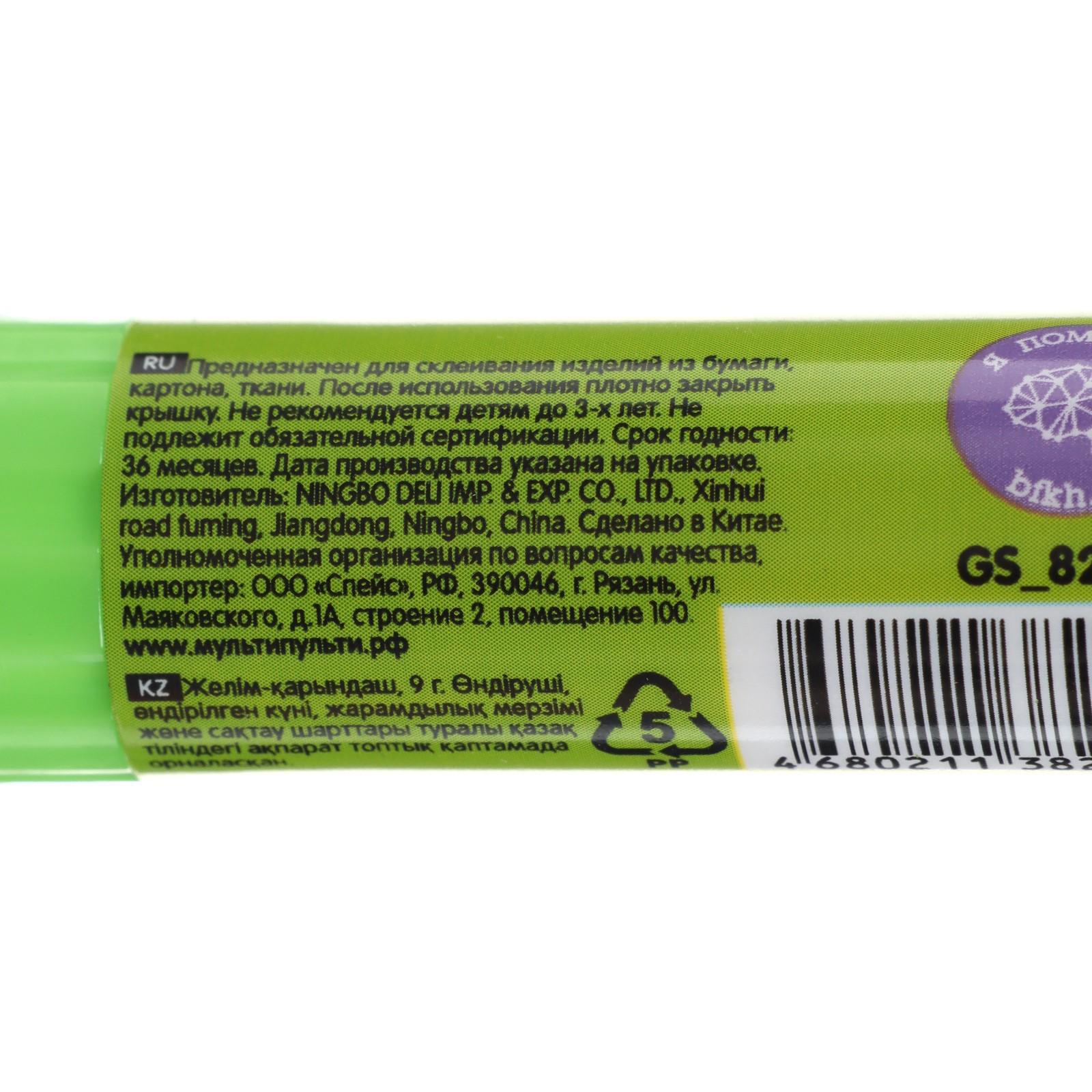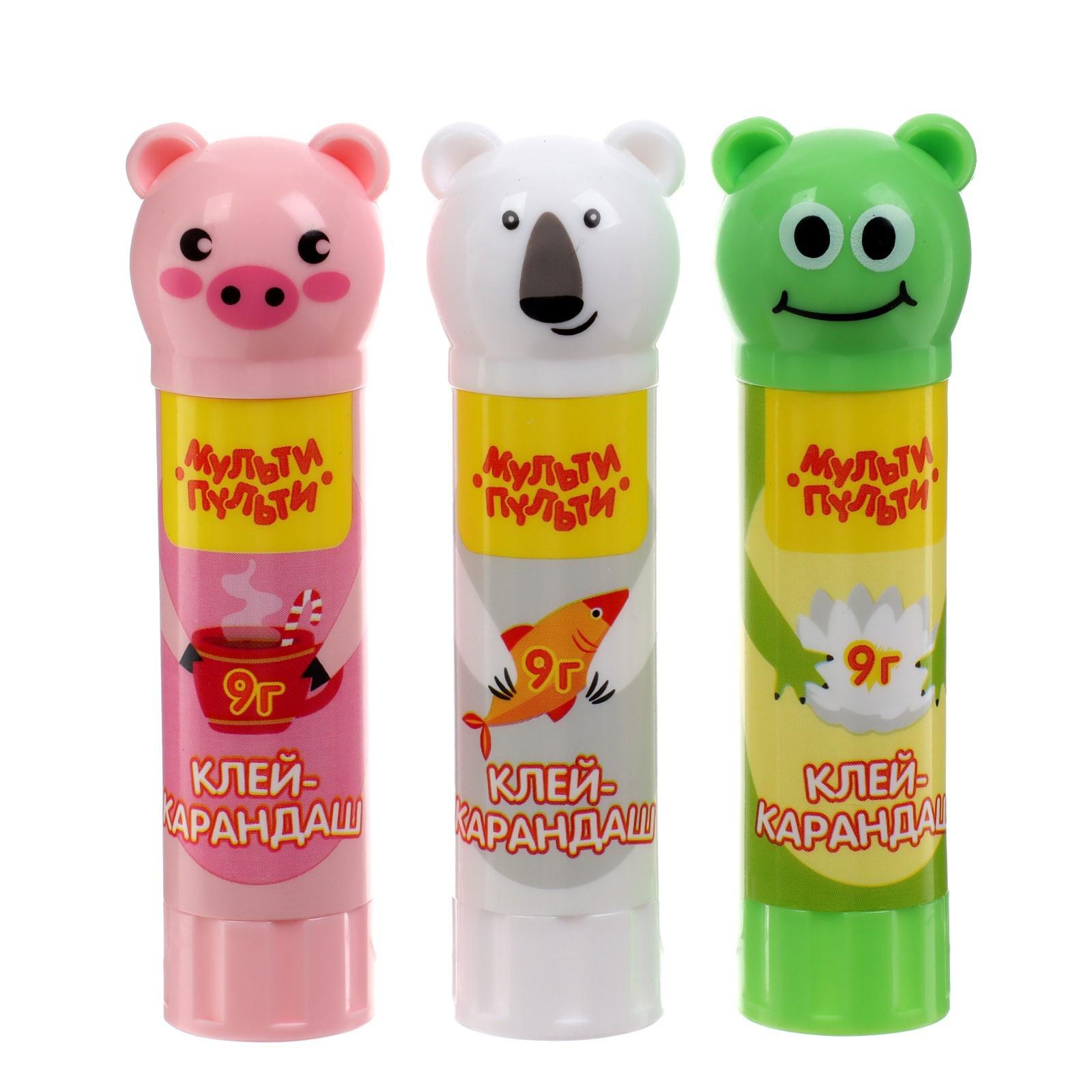 Клей-карандаш PVP 9г Мульти-Пульти "Зверята: Свинка, Лягушка, Белый медведь", колп в ф жив