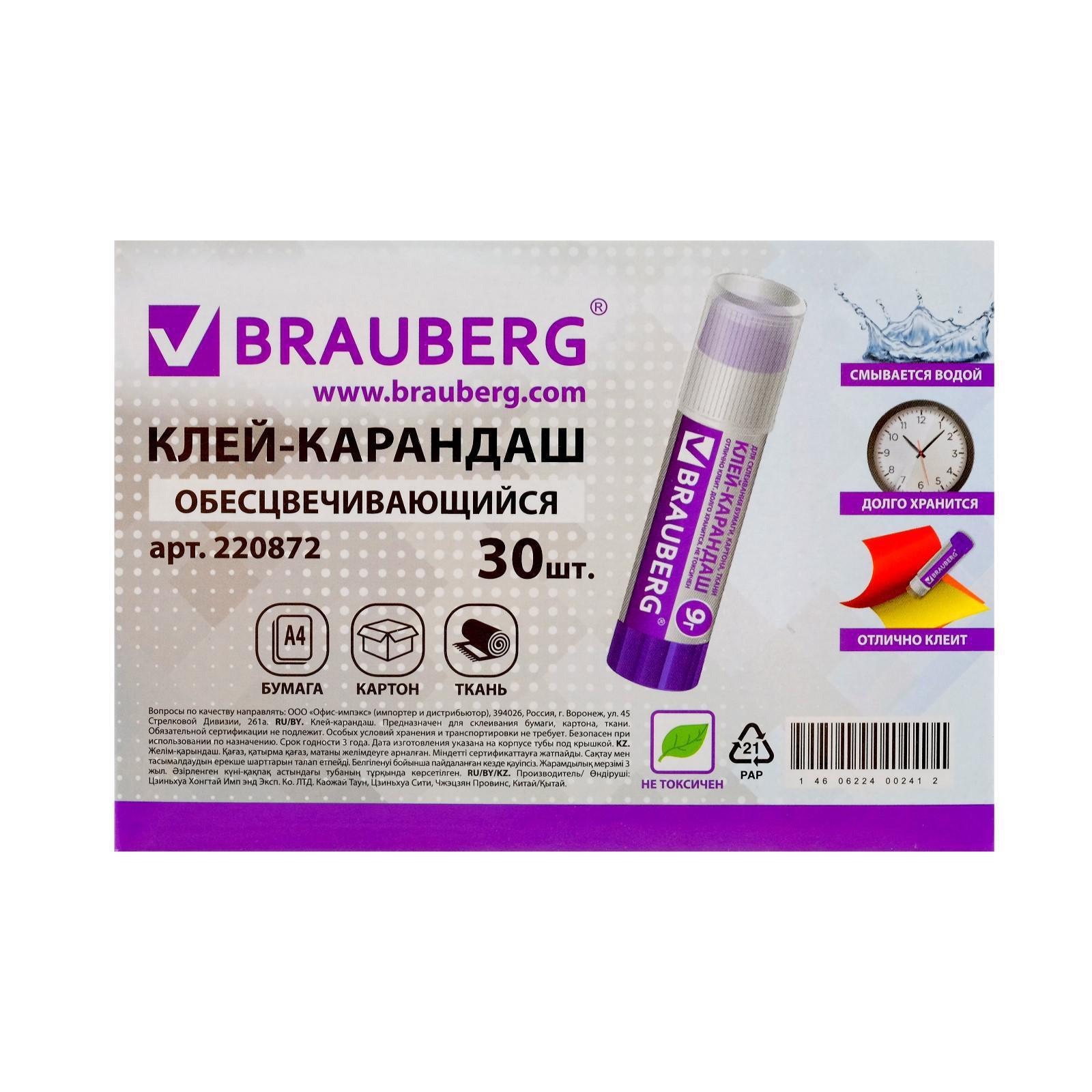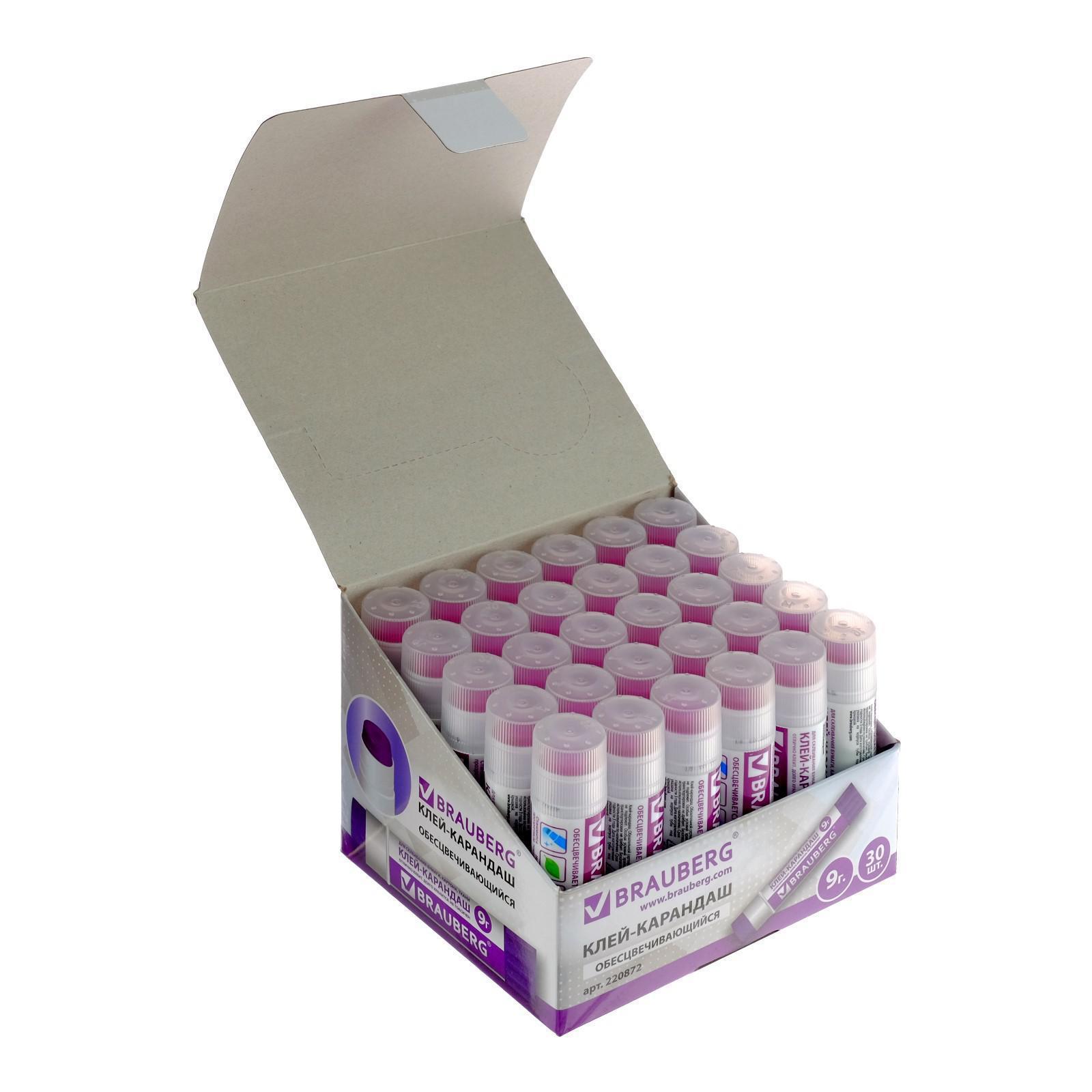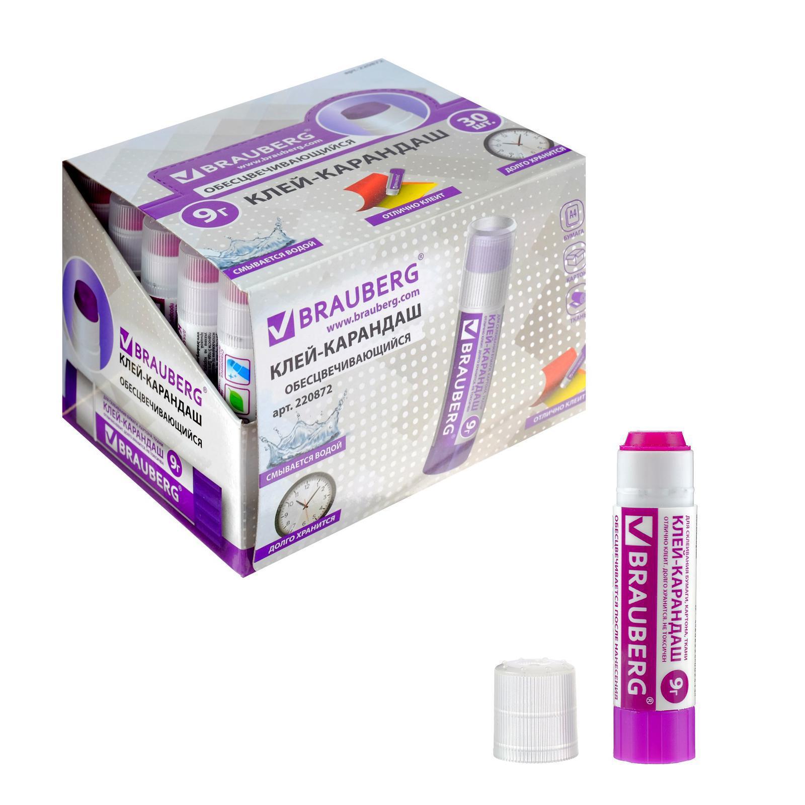 Обесцвечивающийся клей-карандаш BRAUBERG помогает аккуратно и равномерно нанести клеевой слой на поверхность. Идеально подходит для офиса, дома и школы. При склеивании цветной пигмент исчезает со скеиваемой поверхности, не оставляя следов. Обесцвечивающийся индикатор позволяет на некоторое время сделать видимой клеевой слой для вашего удобства. Безопасен при использовании, не содержит токсичных веществ. Не деформирует бумагу.Клей удобен в использовании. Легко смывается с рук и рабочей поверхности. Обеспечивает быстрое и качественное склеивание.Компактный объем — 9 г. Увеличенный срок годности — 3 года.