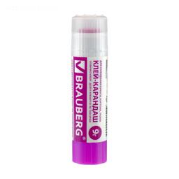 Клeй-карандаш ПВП 9 г BRAUBERG, цветной