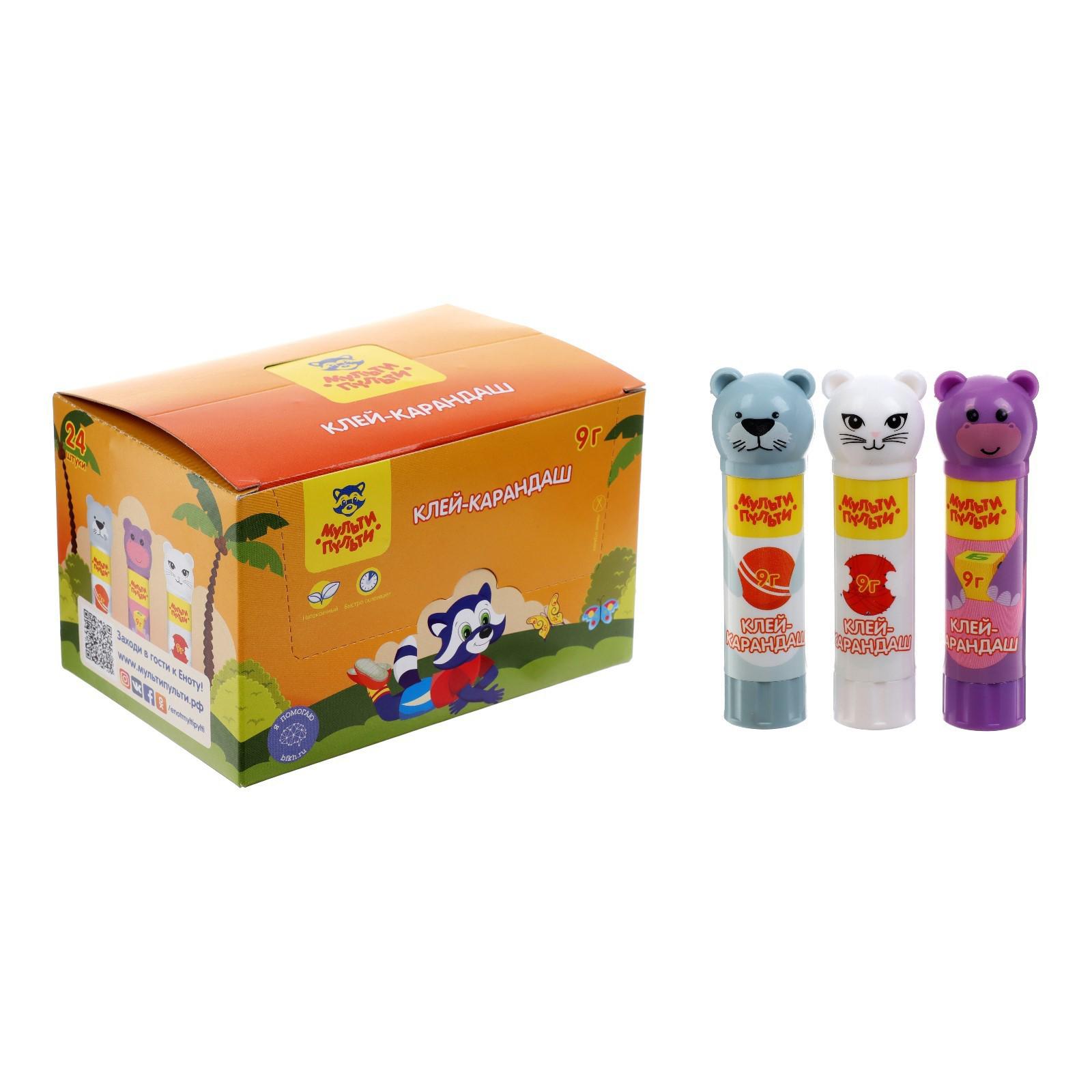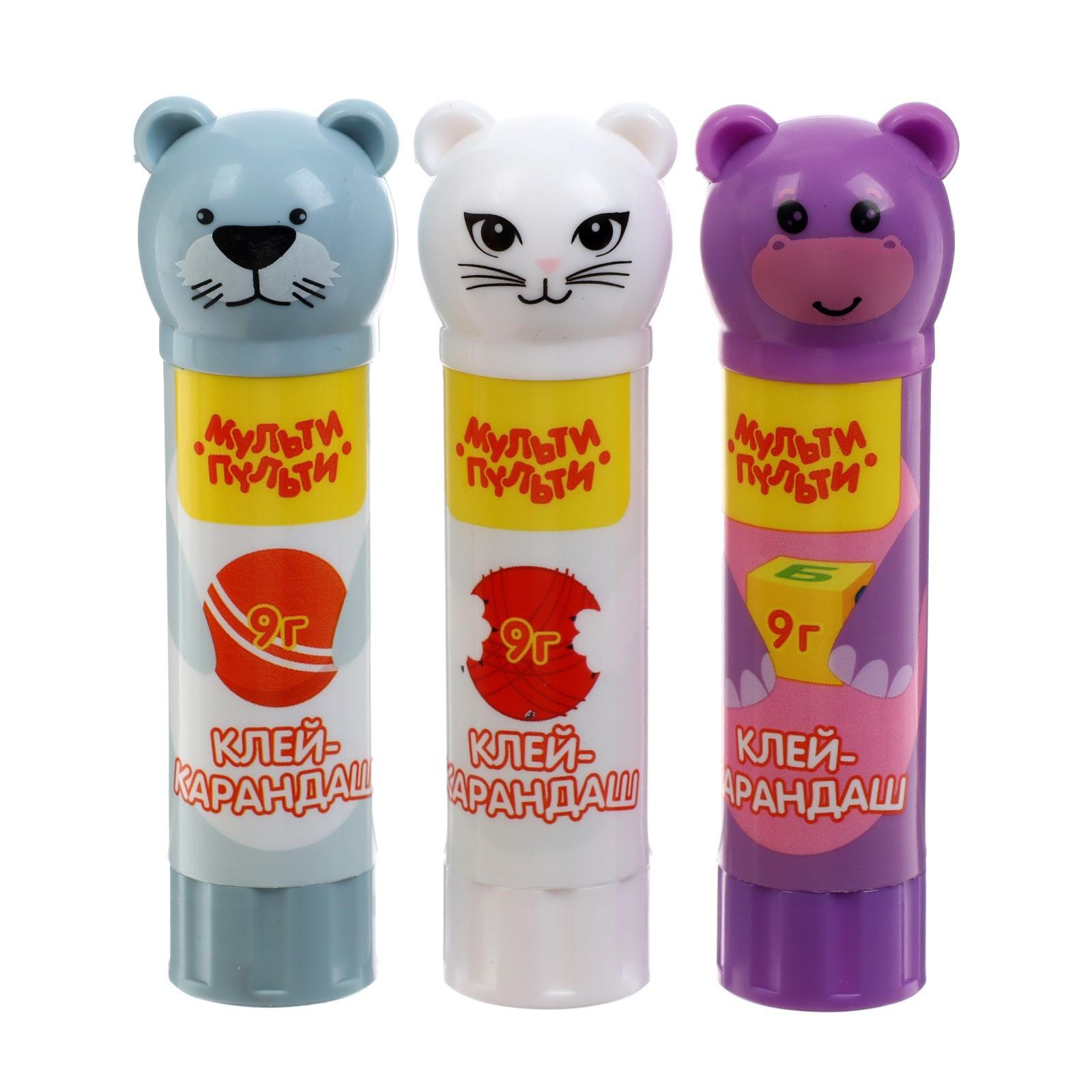 Клей-карандаш PVP 9г Мульти-Пульти "Зверята: Морской котик, Бегемот, Кошка", колп в ф жив