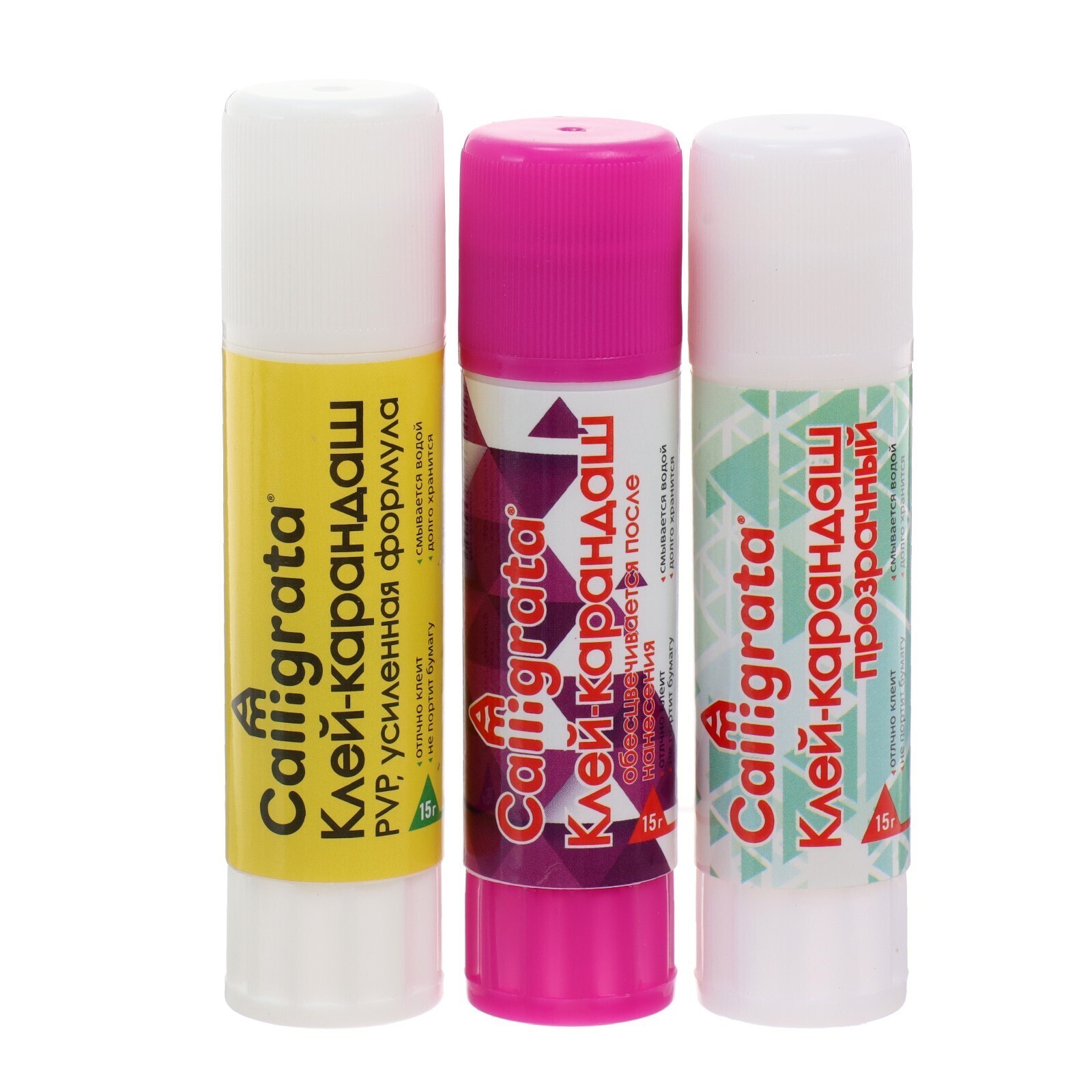 Клей-карандаш 15 грамм, набор 3 шт. (PVP, PVA,PVA цветной)