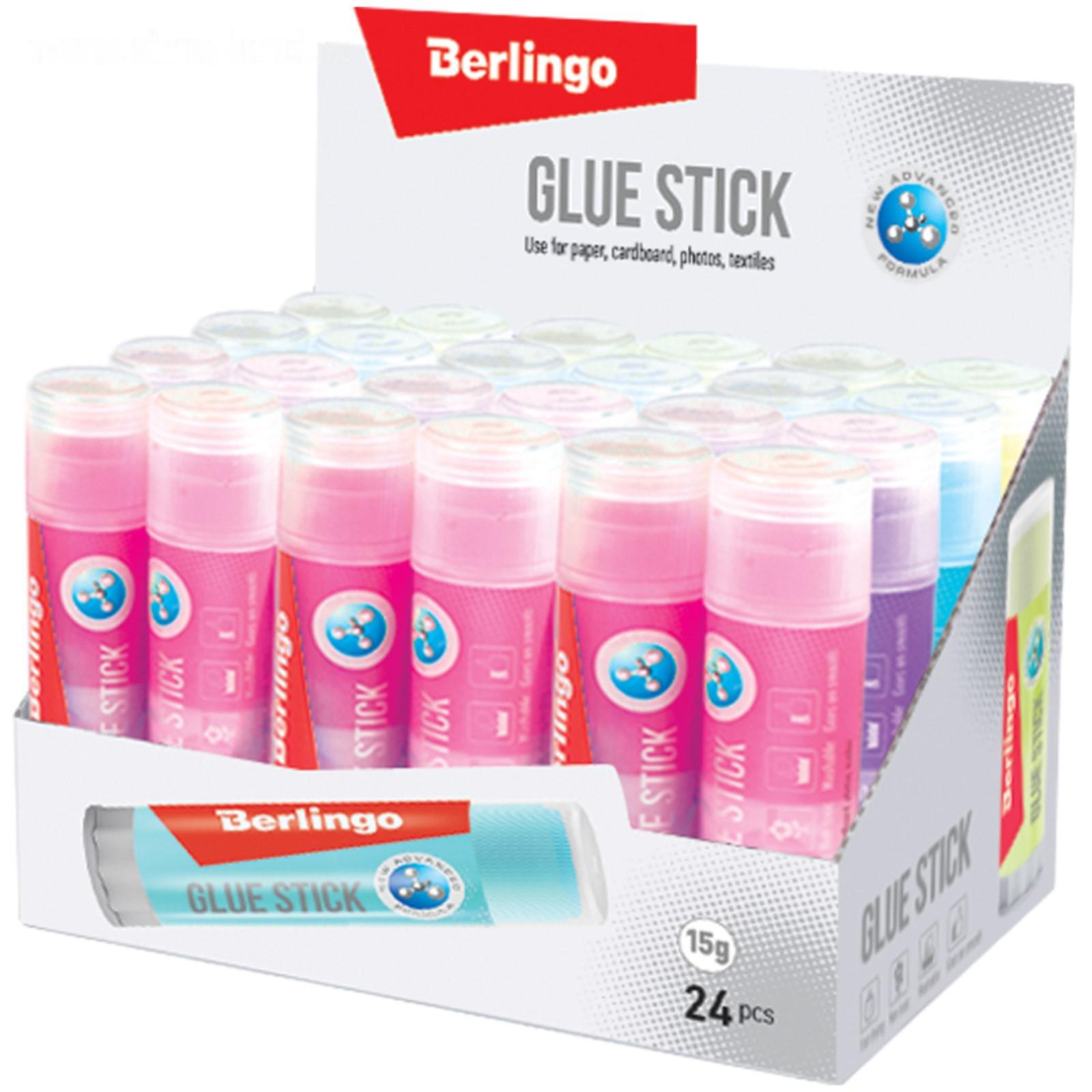 Клей-карандаш PVP 15 г Berlingo Aqua, цветной