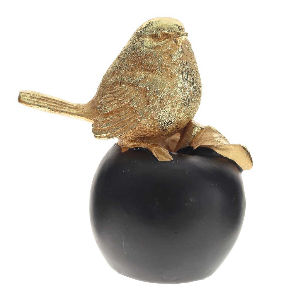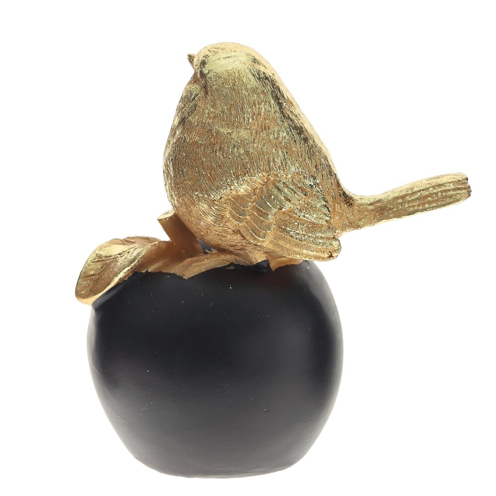 Декоративная фигурка в виде золотой птицы на черном яблоке. Она идеально дополнит и внесет новые краски в ваш интерьер.