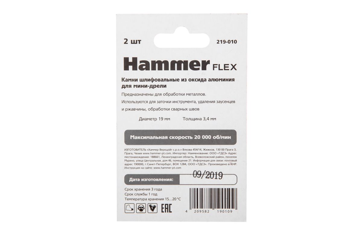 Диски шлифовальные для мини-дрели Hammer Flex 219-010, 19 мм, оксид алюминия, с держателем, 2 шт