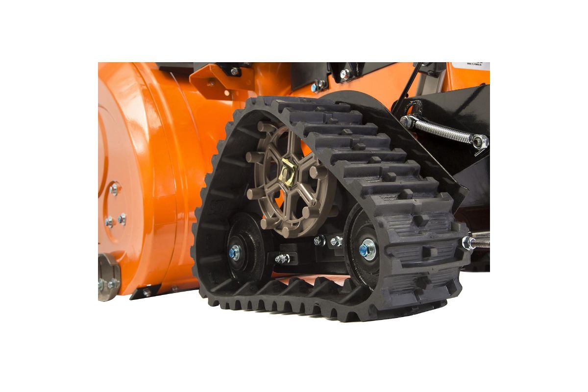 - Гусеницы способствуют обеспечению хорошей проходимости и устойчивости агрегата даже на заснеженных и обледенелых участках;
