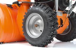 Бензиновый снегоуборщик оснащен колесами высокой проходимости и 8-ступенчатой коробкой передач. Благодаря шнекам-ледорубам агрегат подходит для уборки любого типа снега. Имеет регулировку направления и дальности выброса снега. Двигатель DAEWOO 290 winter характеризуется увеличенным моторесурсом, высокой мощностью, облегченным запуском даже при минусовых температурах и низким расходом топлива. Рабочая дальность выброса составляет от 1 до 15 метров.