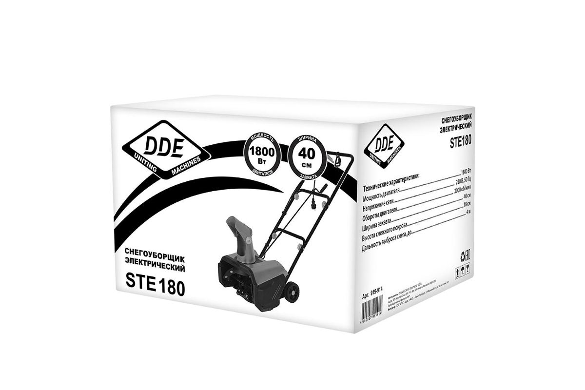 DDE STE180 – электрический снегоуборщик для очистки парковок, придомовых, садовых дорожек и т.д. Мощность 1800 Вт. Убирает наносы высотой до 180 мм.