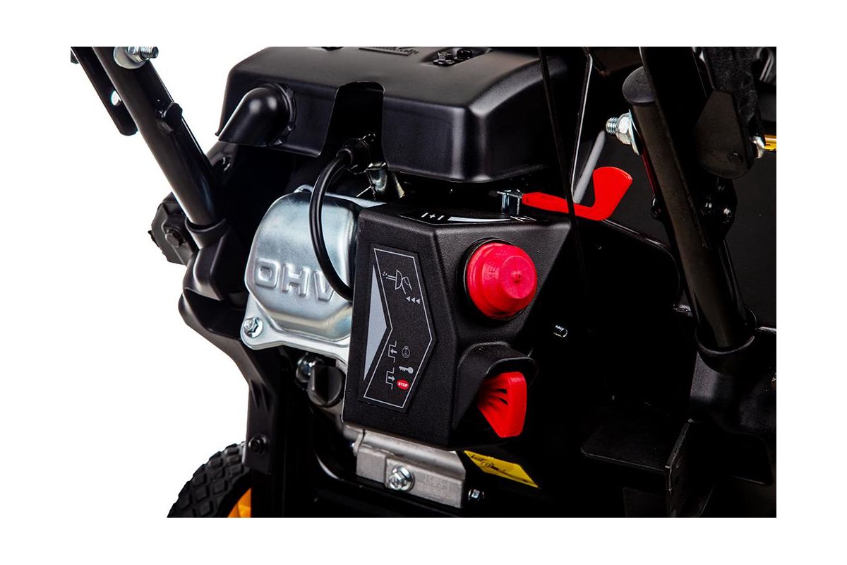 Снегоуборщик заводится с ручного стартера. Для запуска не нужен аккумулятор или электросеть.