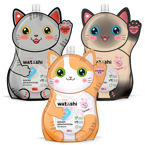 Бальзам для мытья посуды без перчаток микс дой-пак WATASHI KOTE 700 мл Россия