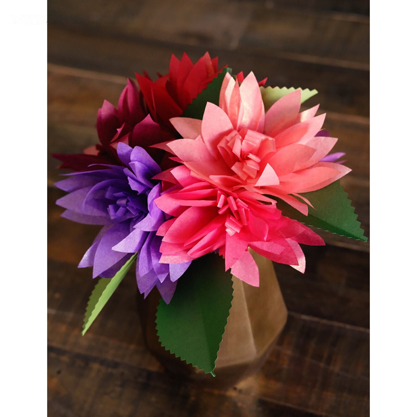 Часто выполняет функции наполнителя. Если в коробке или корзиночке осталось вокруг подарка свободное пространство, то тут и пригодится тишью. Во-первых, своим цветом она оттеняет подарок и подчеркивает красоту самой коробки. Во-вторых, сразу визуально увеличивается объем содержимого. Бумага тишью очень пластичная, легко заминается и ложится интересными складочками, то есть можно вылепить любую фактуру поверхности.