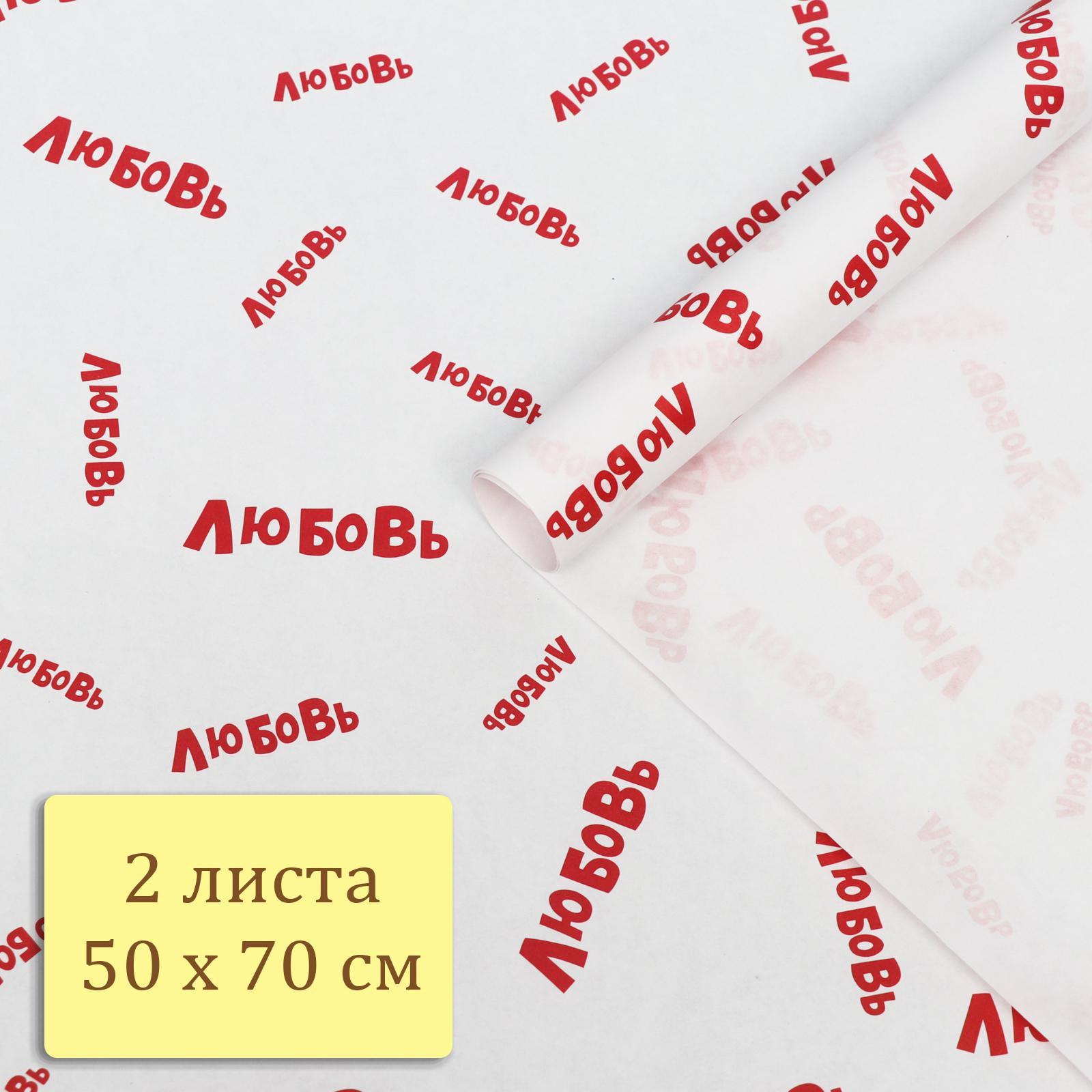 Набор бумаги упаковочной крафт "Любовь", 50 × 70 см, 2 листа