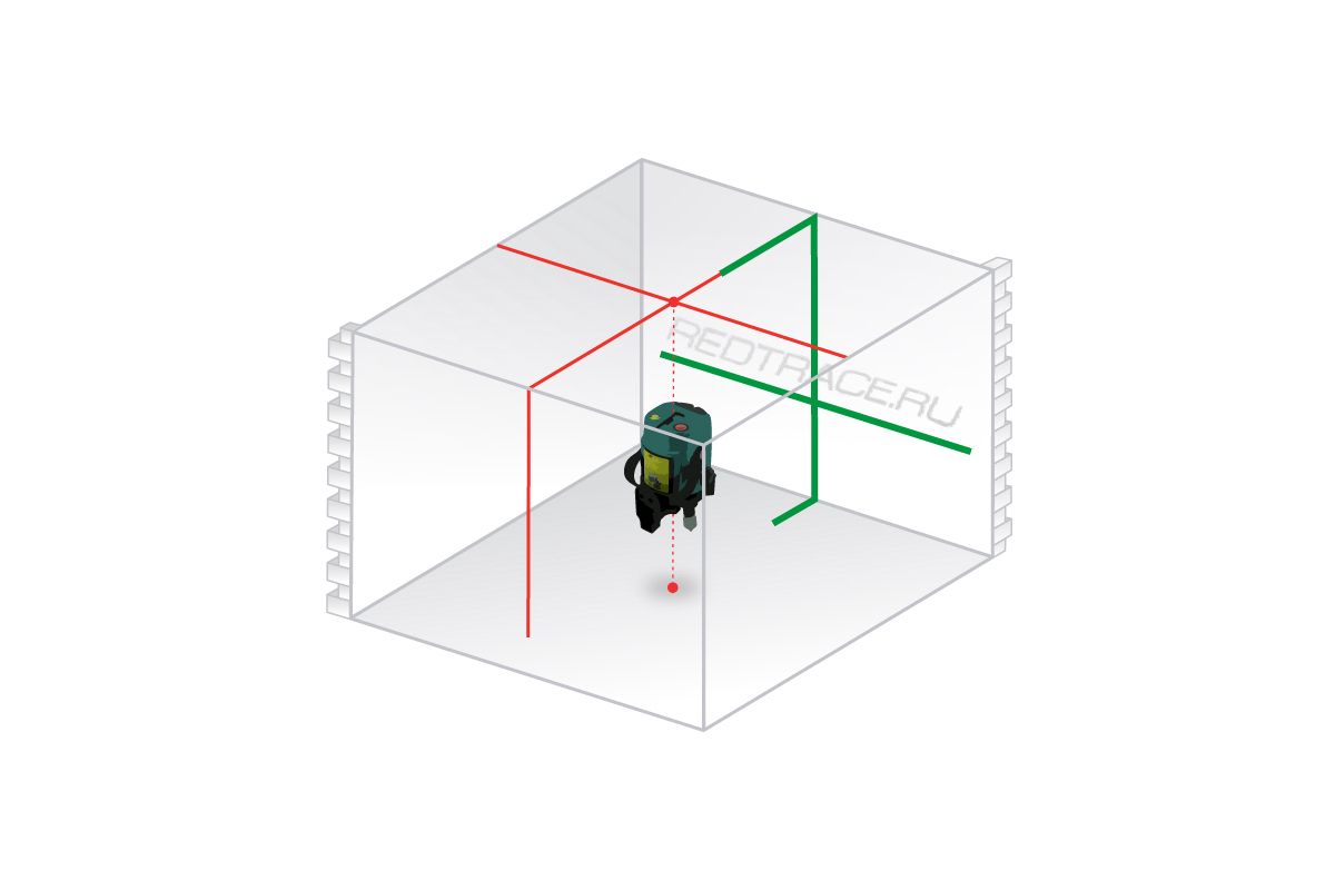 Самовыравнивающийся лазерный уровень Redtrase Mix сочетает в себе лазерные лучи двух цветов – красный и зеленый. Красные лучи (2 шт) отображают крест в точке зенита под углом 90 градусов, располагаясь на потолке и одной стене. Зеленые лучи (2 шт) – проецируют на одну стену перекрестие под углом 90 градусов. Зеленый луч в разы ярче, чем красный, вы легко увидите его даже на улице при ярком дневном свете. На уровне имеется удобная ручка – это облегчает транспортировку.
