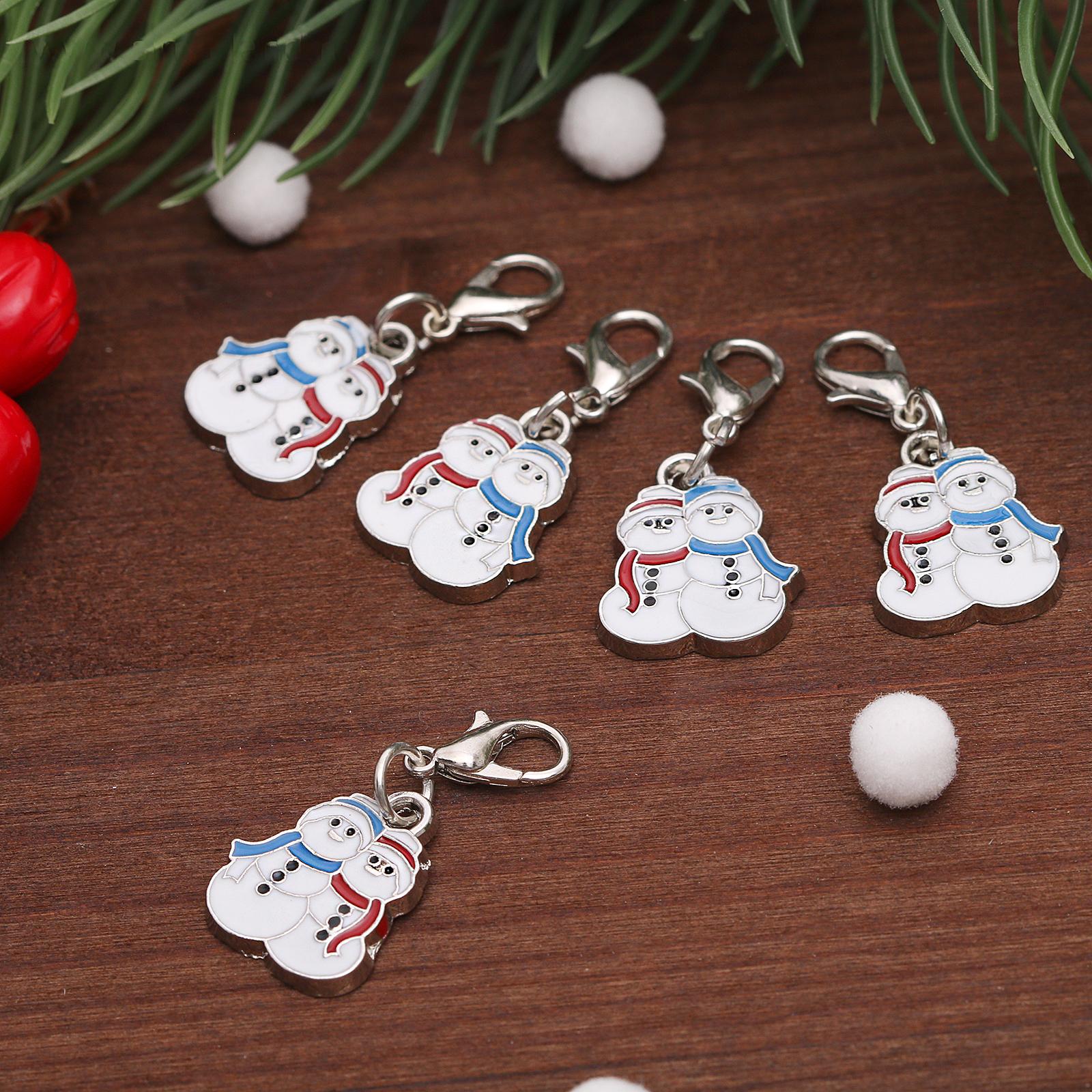 Шарм "Снеговики", цвет бело-сине красный в серебре