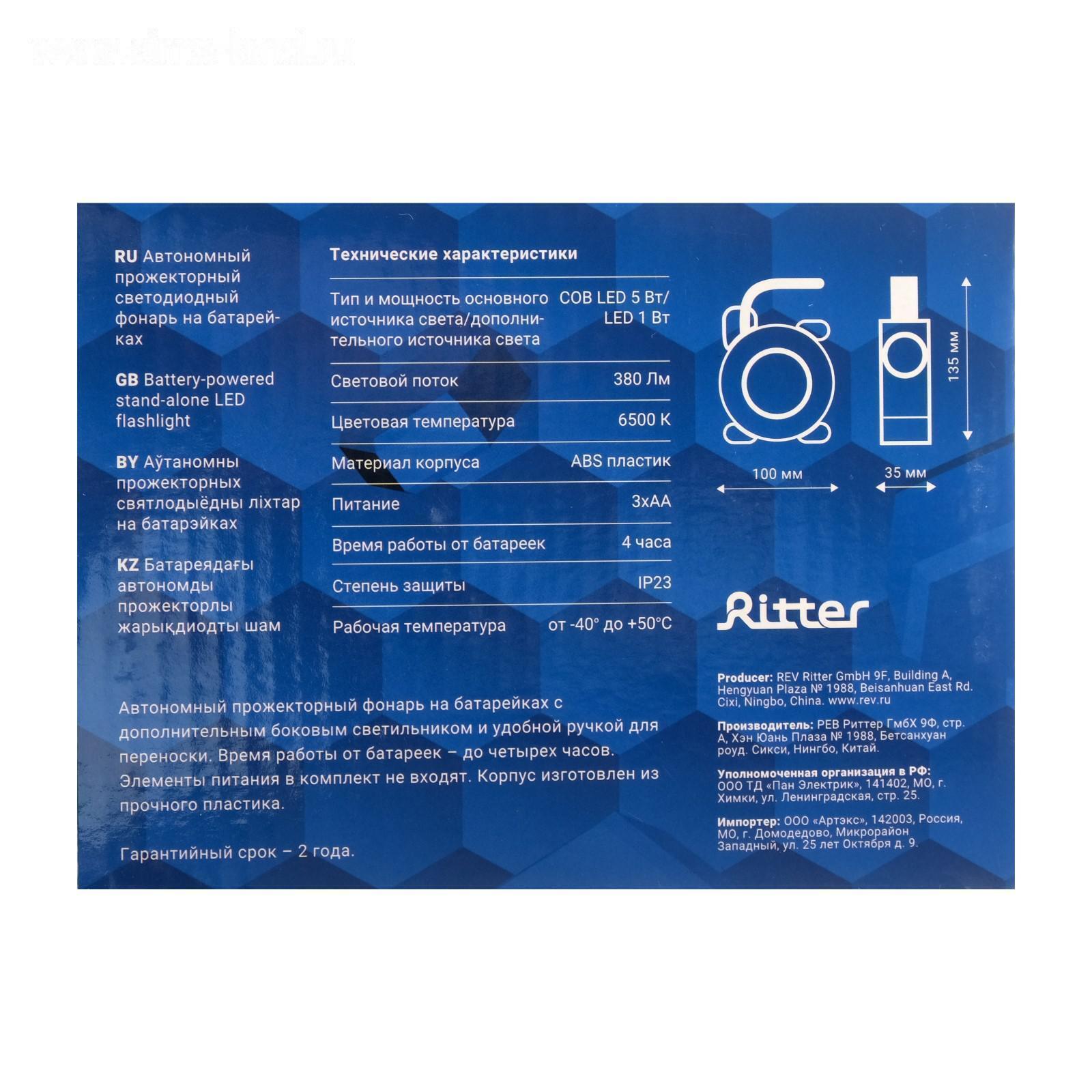 Прожектор светодиодный Ritter, 6 Вт, 380 Лм, IP23, автономный