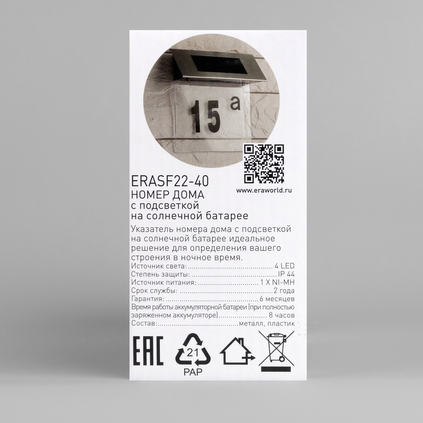 Садовый светильник «ЭРА» на солнечной батарее «Номер дома», 20 × 18 × 5 см, свечение белое