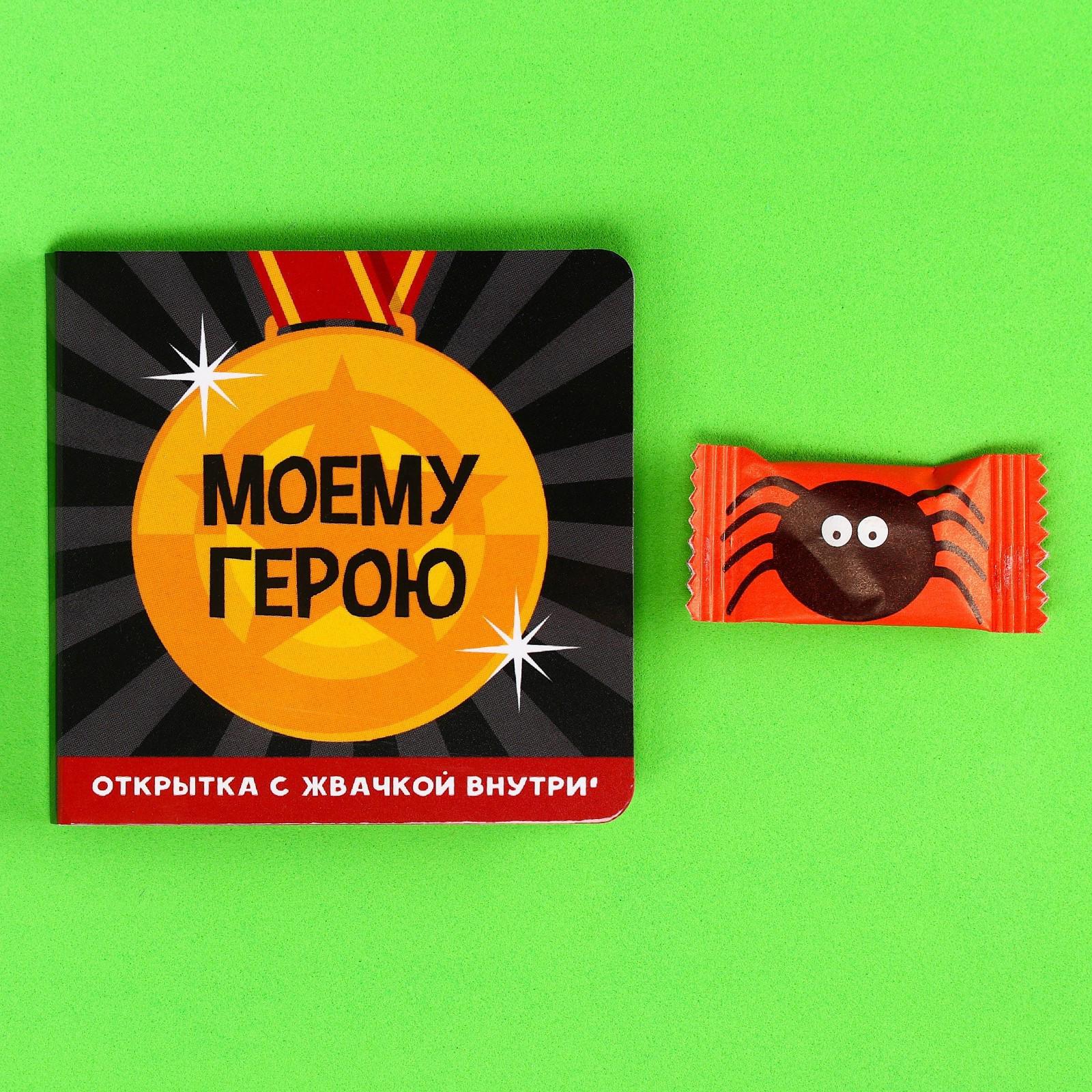 Жевательная резинка «Моему герою» в открытке, вкус: мята, БЕЗ САХАРА, 1 шт. х 1,36 г.